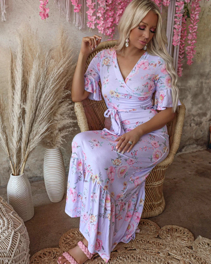 Be the first to review “7th Ray Apparel Lilac Floral Ruffle Sleeve Maxi Dress” Cancel reply