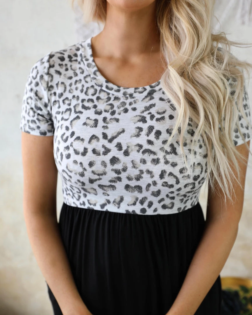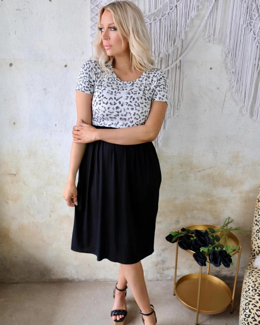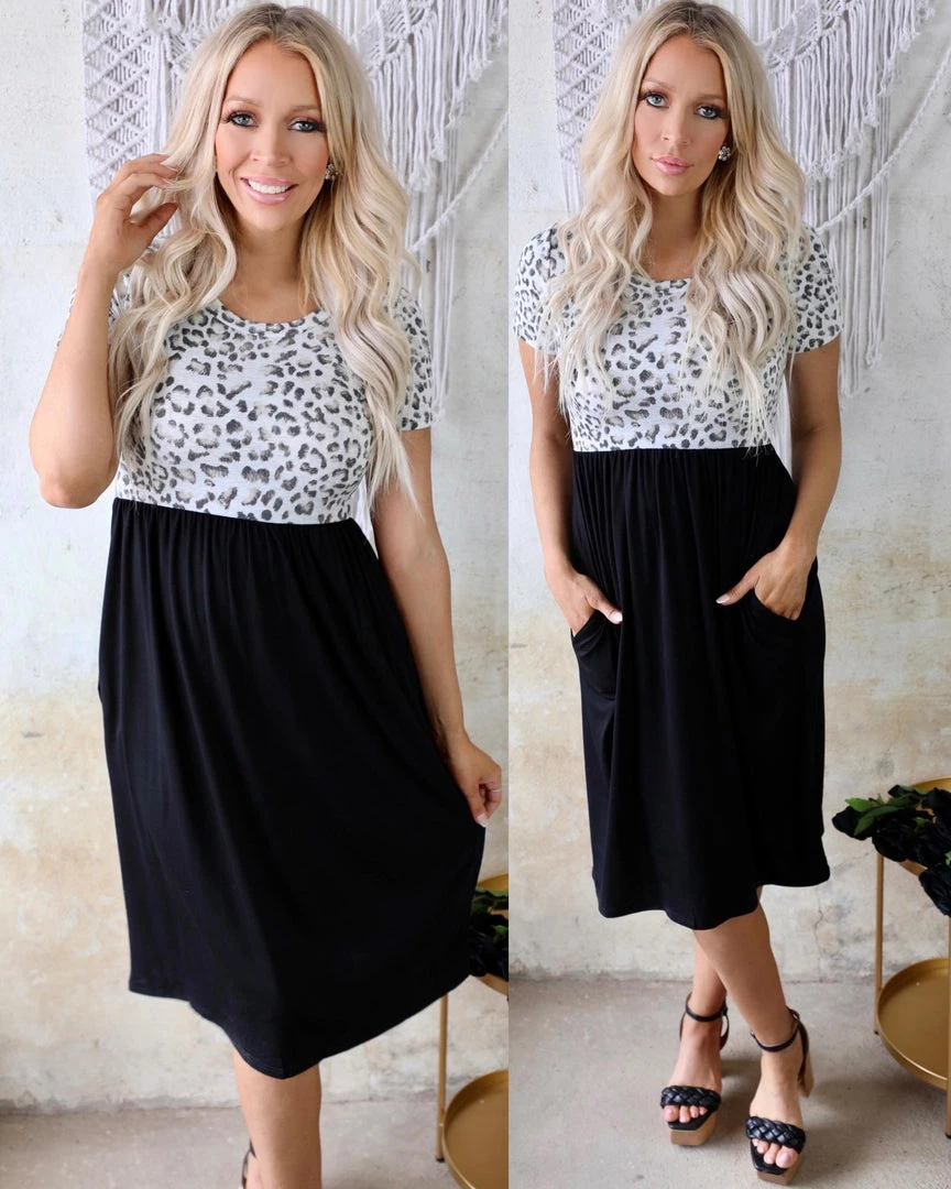 Black animal print tie-back dress