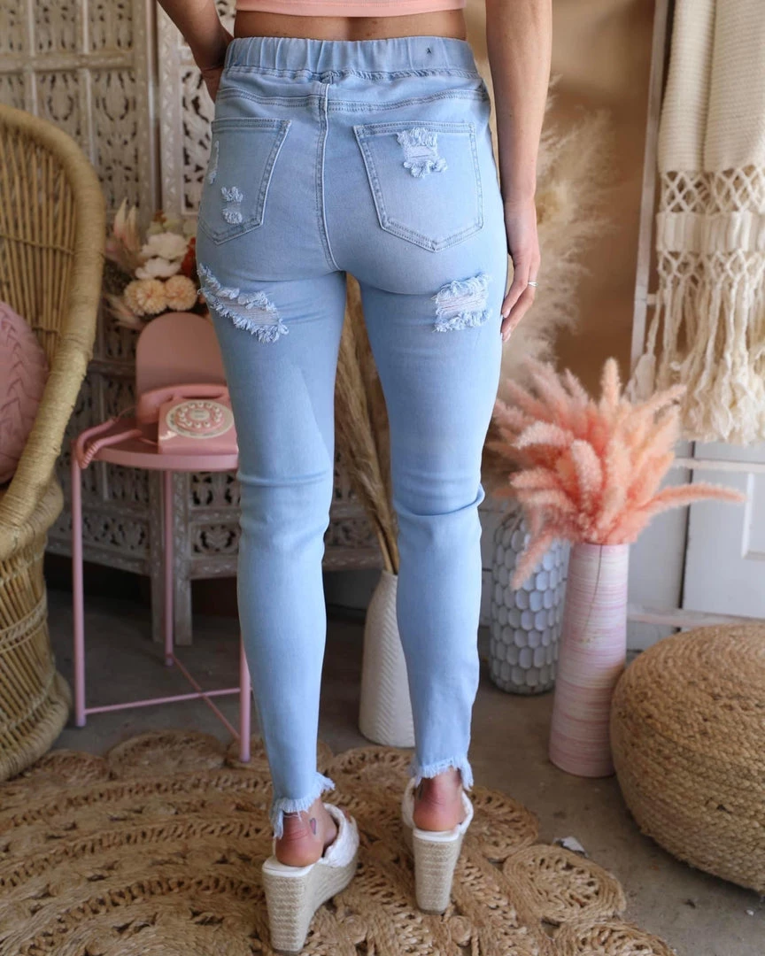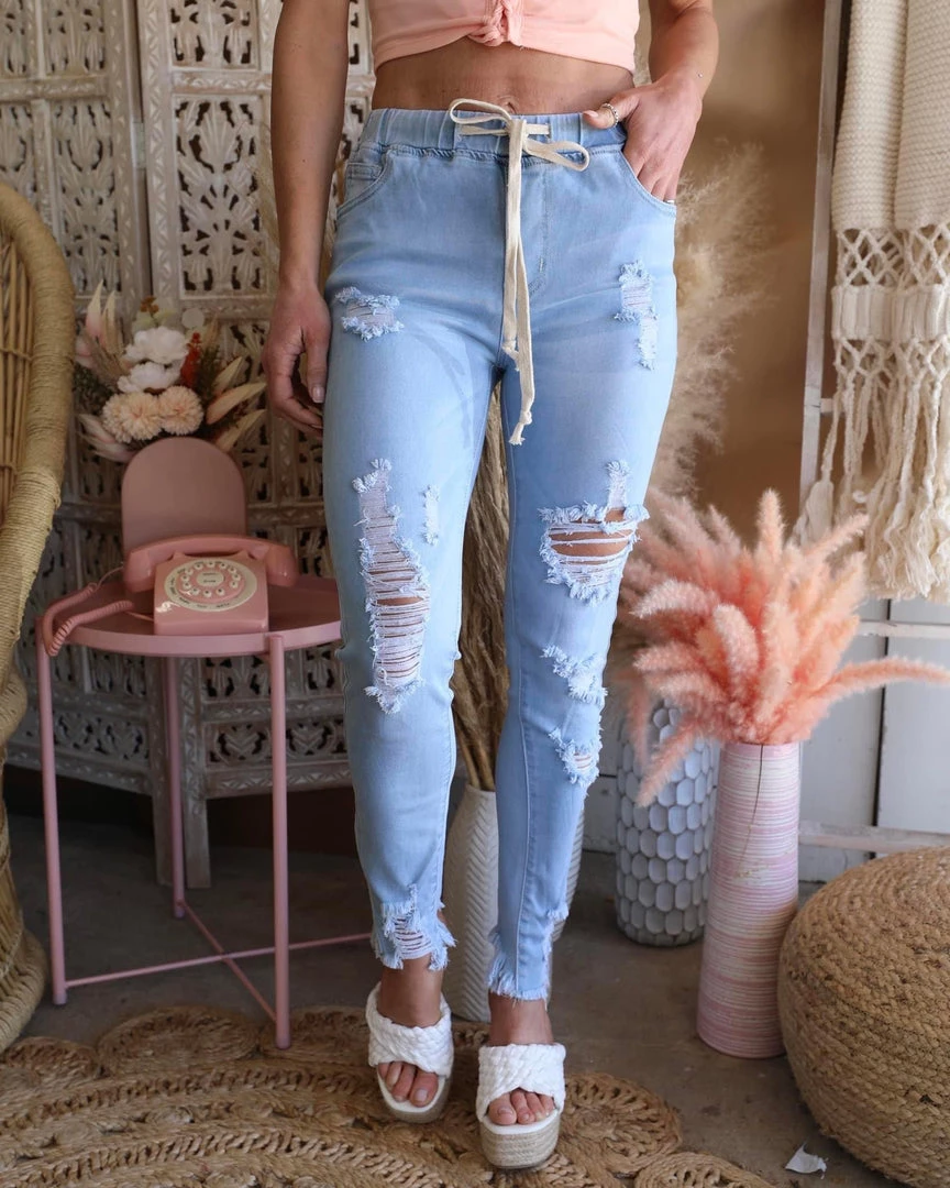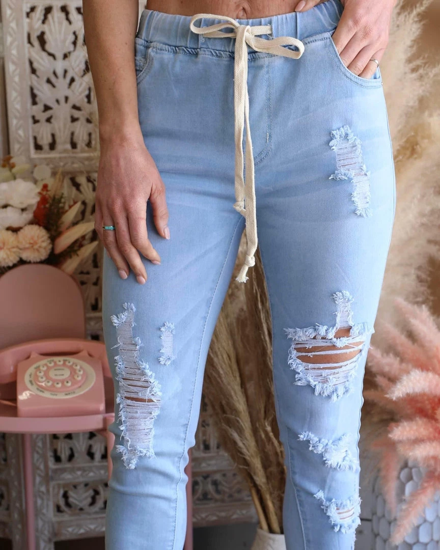 Brenda Blue High Waist Distressed Denim Jogger Pants