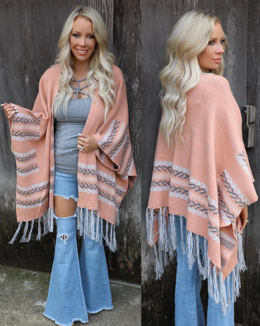 Peach Boho Tassel Cardigan