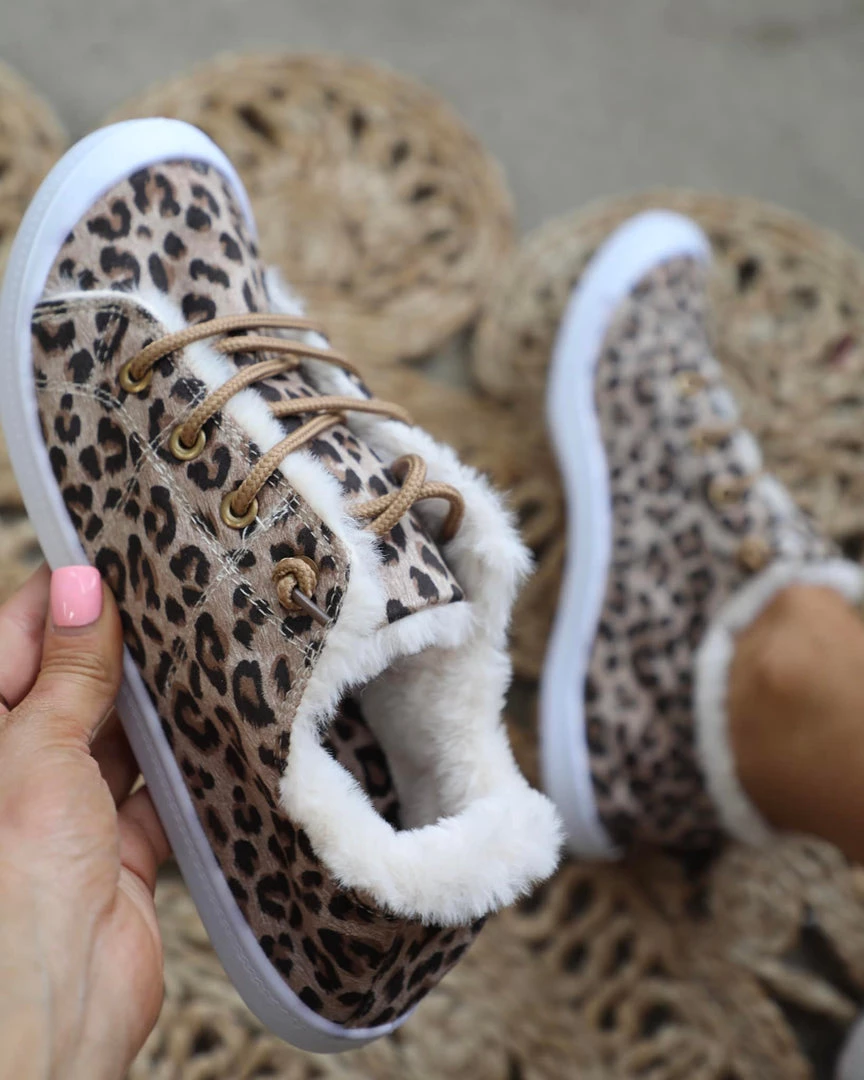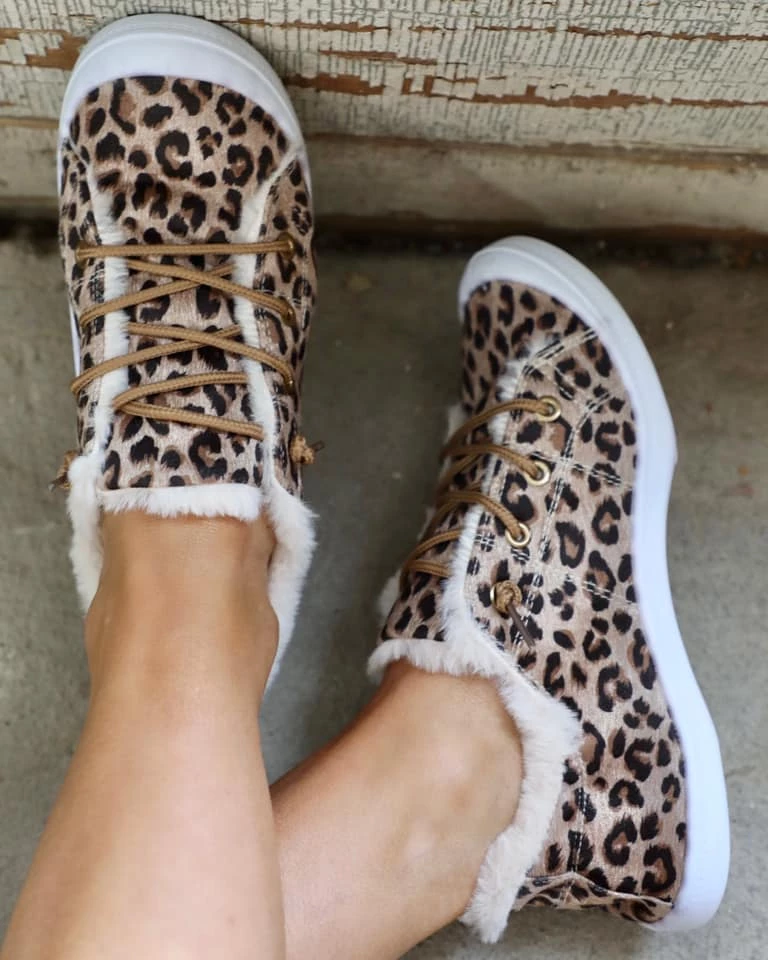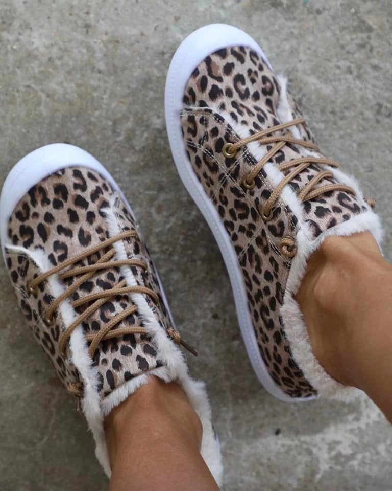 Gypsy Jazz Tan Leopard Fuzzy Lined Sneakers