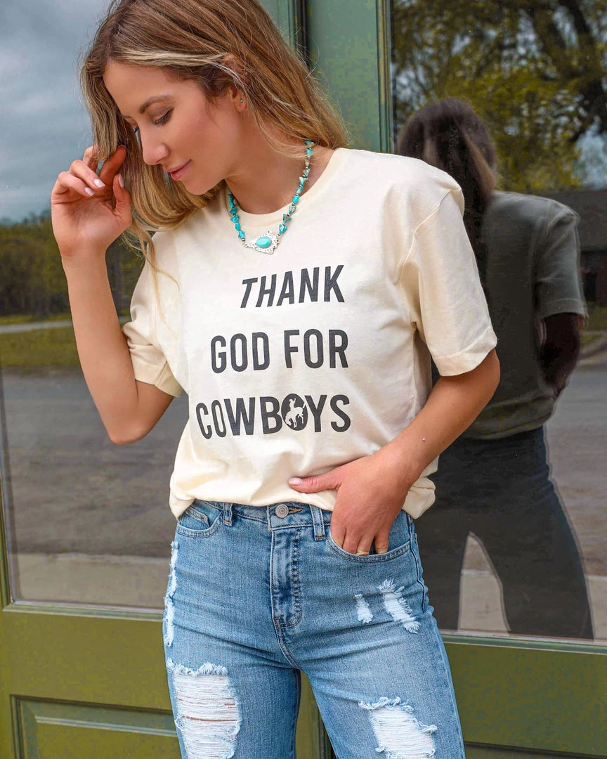 Be the first to review “Bella + Canvas Apparel Cream “Thank God For Cowboys” Graphic Tee” Cancel reply