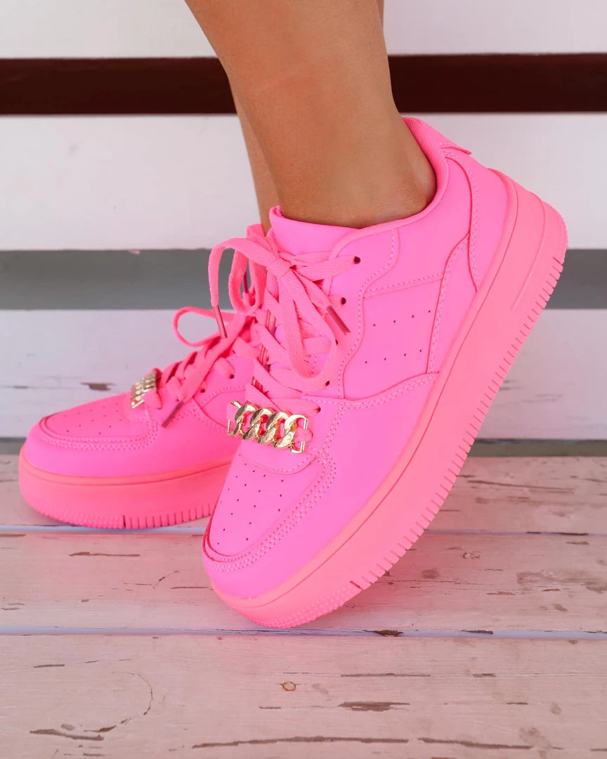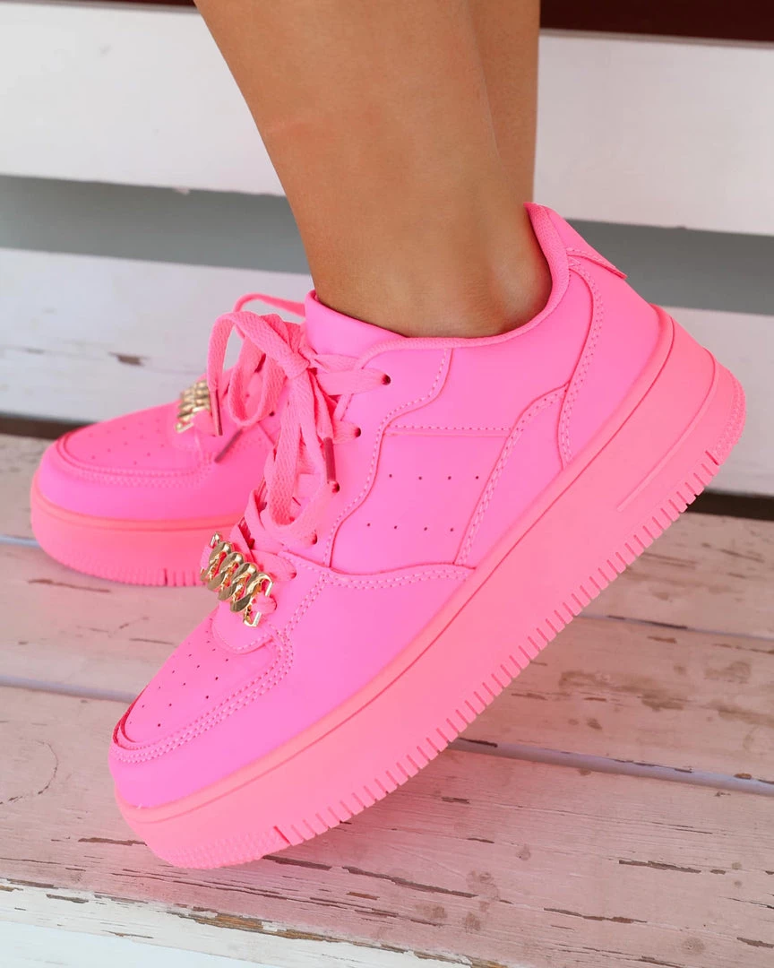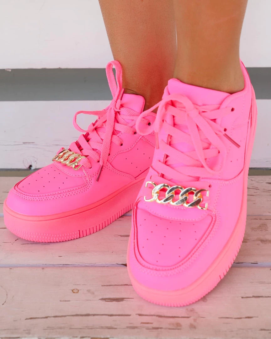 Be the first to review “Berness New Neon Pink And Gold Chain Tennis Shoes” Cancel reply