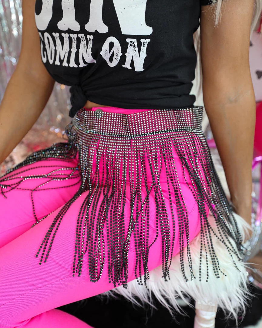 SKU: beston-7238647152817 Categories: Accessories, Belts, Black and Boujee, Kelsey's Faves, Nashville Edition, Trends Tags: Accessories, Belt, Black, Boujee, Faves, Fringe, Nashville, Rhinestone