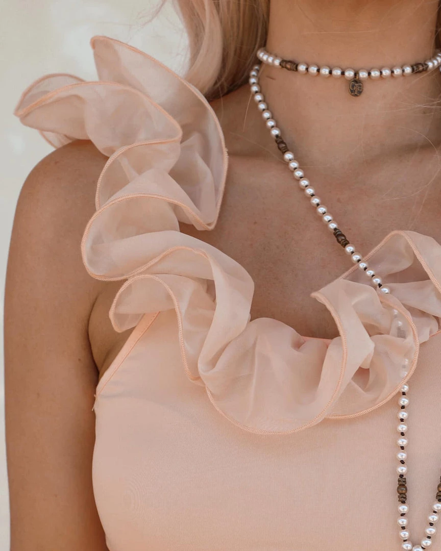 Be the first to review “Bibi Allanah Oatmeal Ruffle Neckline Tank Top” Cancel reply
