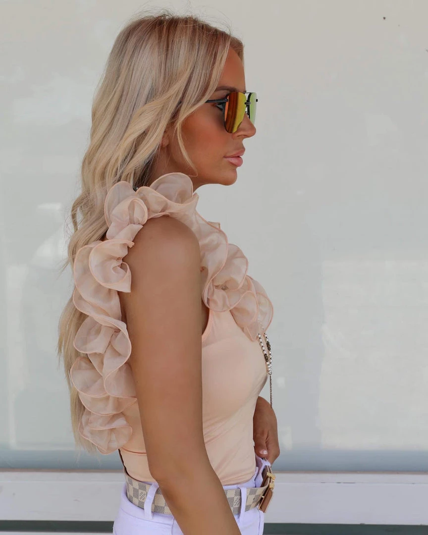 SKU: bibi-7251088113841 Categories: Apparel, Boho Babe, Tank Tops + Halters, TOPS, Tops, Trends Tags: Apparel, Boho, Extra large, Oatmeal, Ruffle, Tank, Top