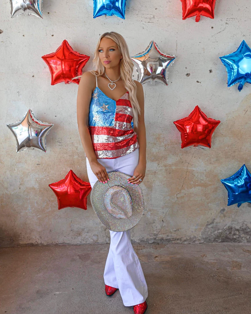 Be the first to review “Bibi Apparel American Flag Sequin Spaghetti Strap Tank Top” Cancel reply