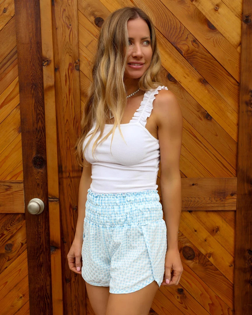 Be the first to review “Bibi Light Blue Seersucker Smocked Waist Shorts Apparel” Cancel reply