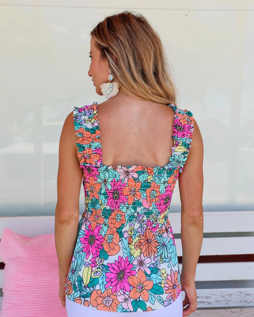 SKU: bibi-7272645722289 Categories: Apparel, Floral, New, TOPS, Tops, Trends Tags: Apparel, Extra large, Floral, July22, New, Peplum, Smocked, Tank