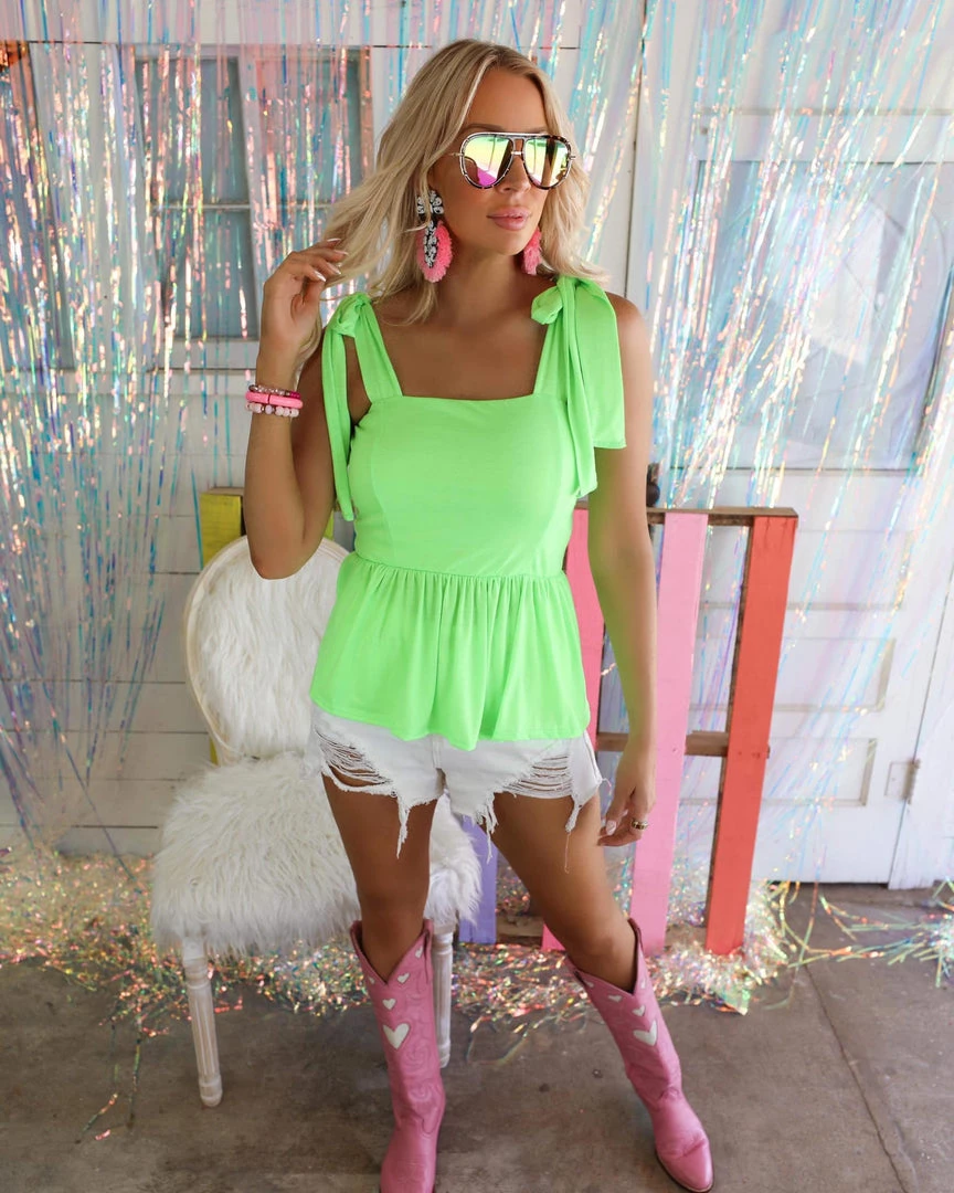 Be the first to review “Bibi New Lillie Neon Lime Peplum Tank” Cancel reply