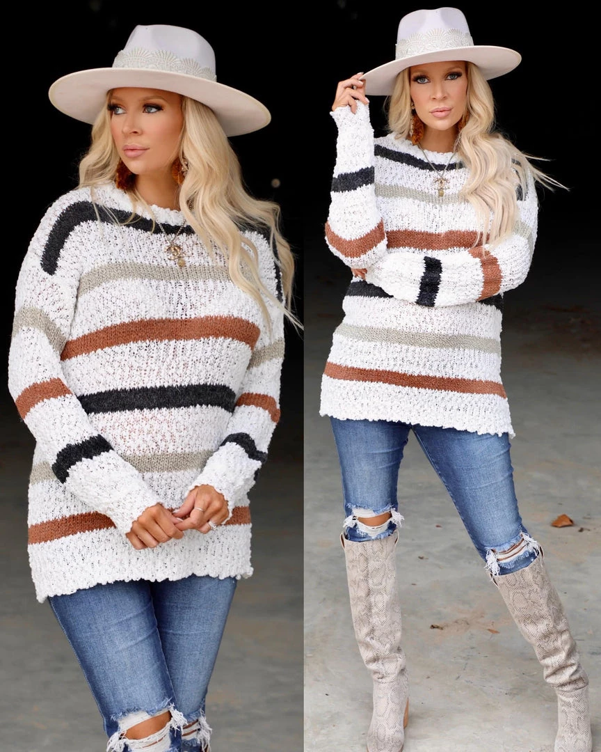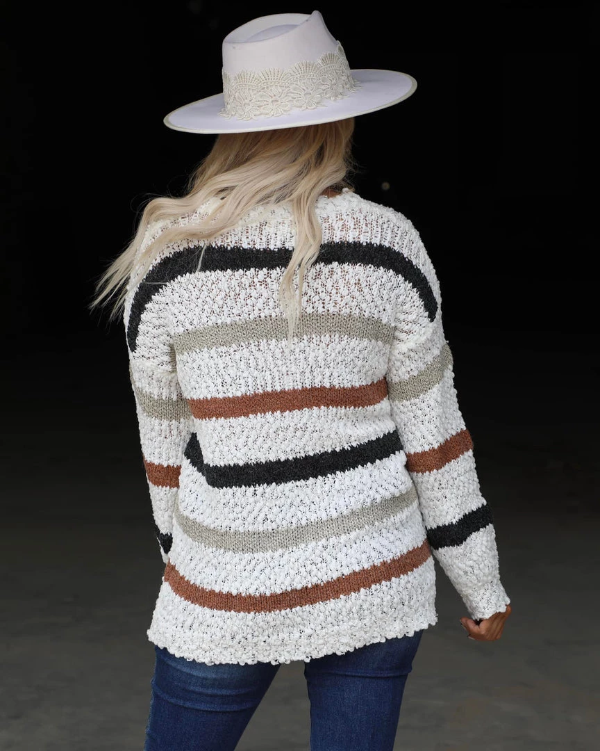 Popcorn knit tunic with wide neck, drop shoulders and bubble sleeves