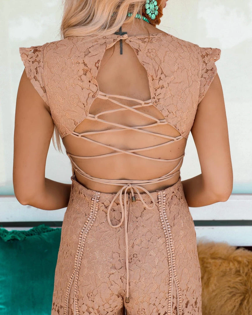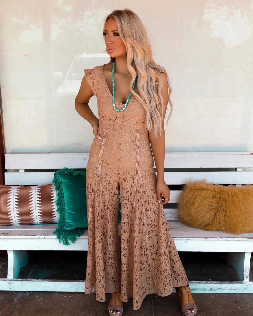 Be the first to review “Blue Buttercup Apparel Janie Tan Lace Wide Leg Jumpsuit” Cancel reply