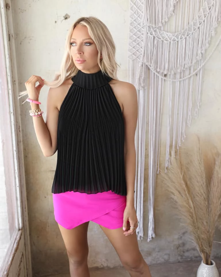 Be the first to review “Blue Buttercup Demi Black Pleated Chiffon Halter Top Apparel” Cancel reply