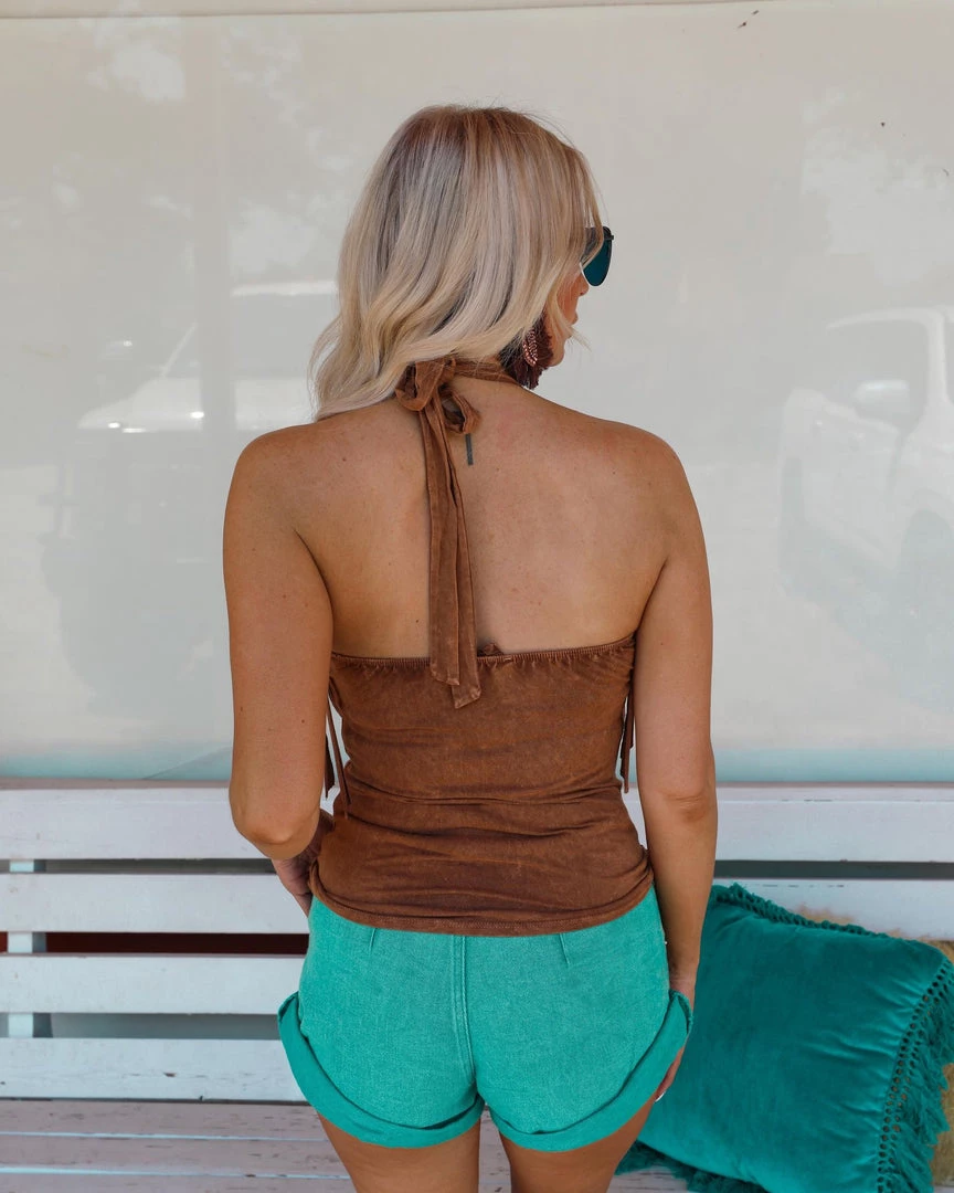 SKU: blue-buttercup-7251927990449 Categories: Apparel, New, Tank Tops + Halters, TOPS, Tops, Trends, Western Vibes Tags: Apparel, Brown, Halter, Halter top, June22, Tank top, Top, Western