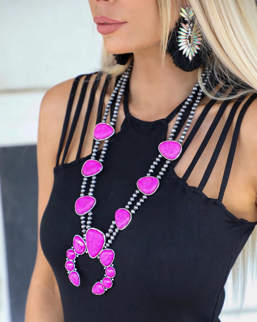 SKU: blue-tortoise-6724906123441 Categories: Best Sellers, Jewelry, Nashville Edition, Necklaces, Rhinestone Cowgirl, Trends Tags: 20530, Accessory, Jewelry, Nashville, Necklace, Pink, Restock, Squash blossom