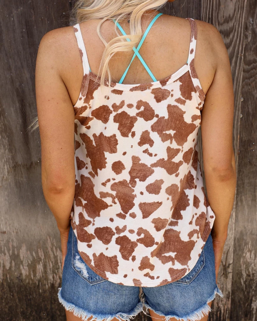 SKU: bom-bom-7256430739633 Categories: Apparel, New, Tank Tops + Halters, TOPS, Tops, Trends, Western Vibes Tags: Apparel, Cow print, June22, New, Shirt, Spaghetti strap, Tank, Tank top