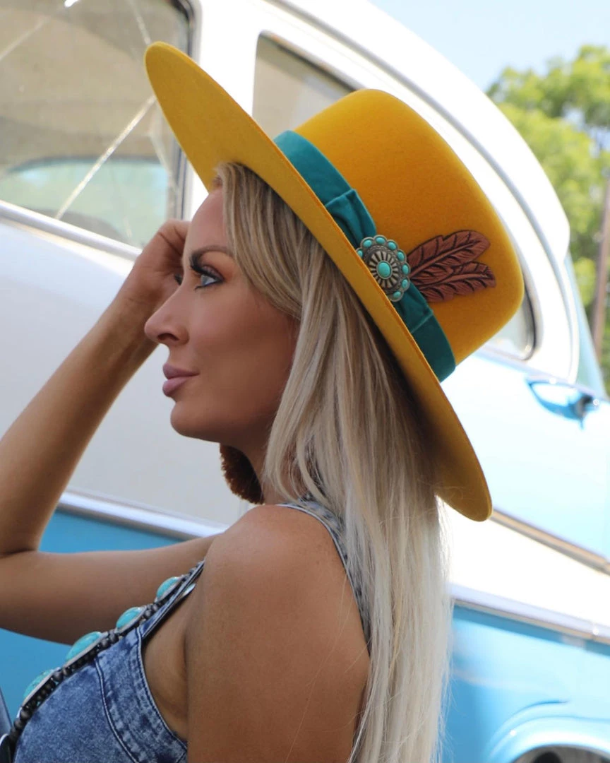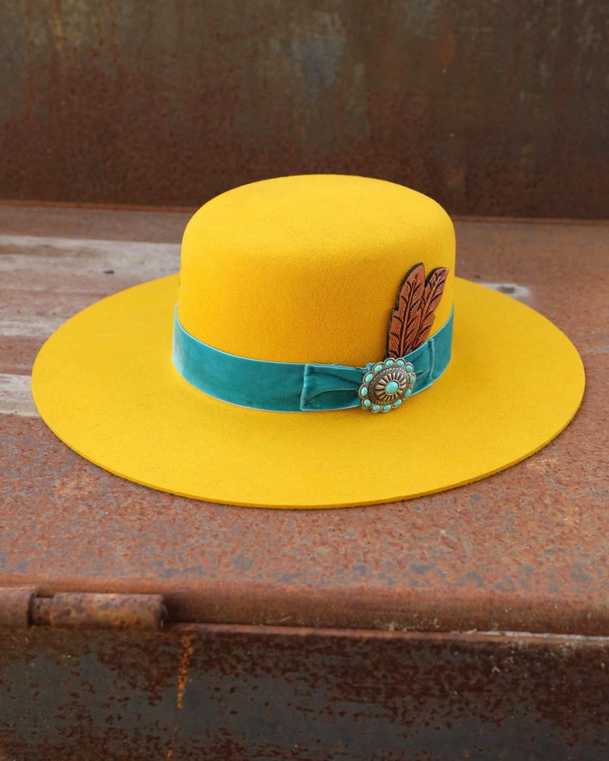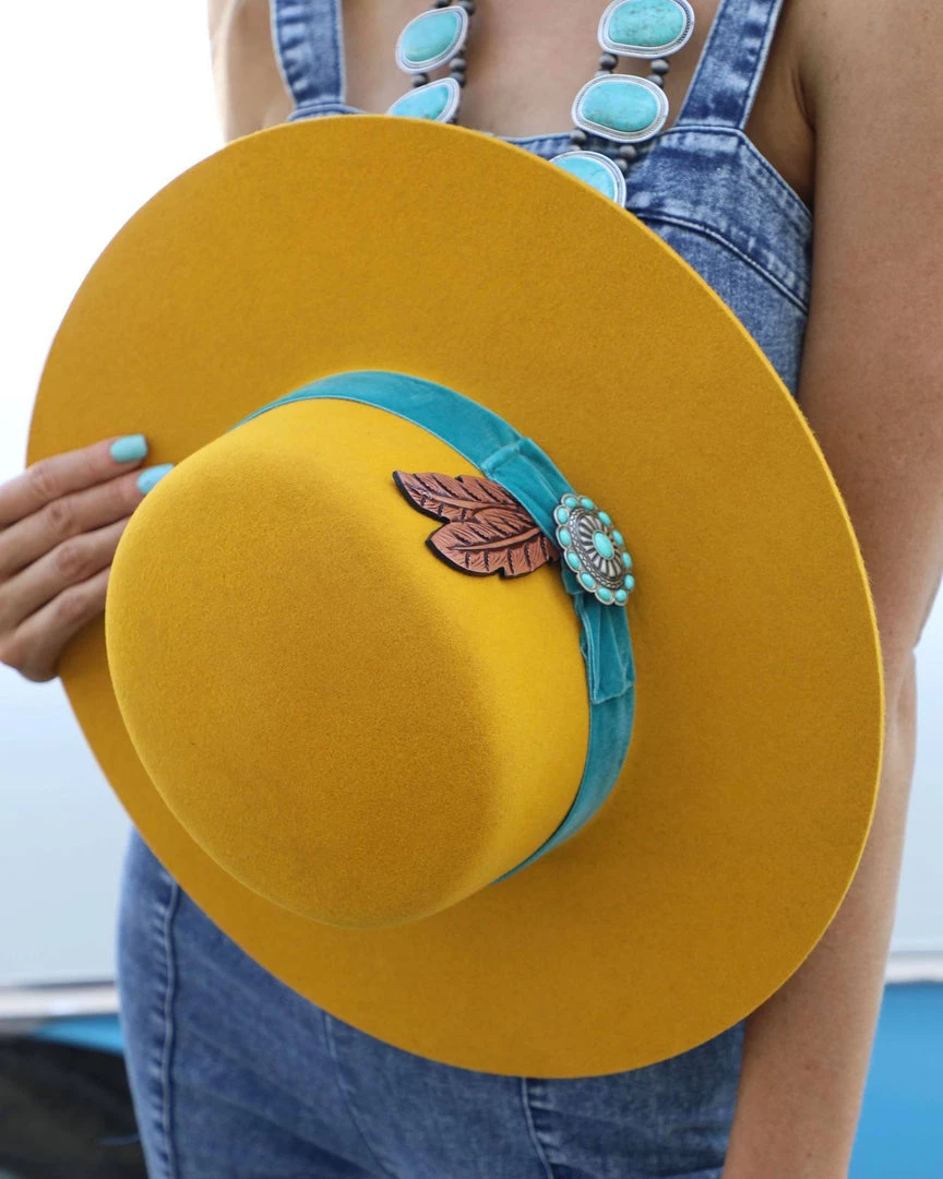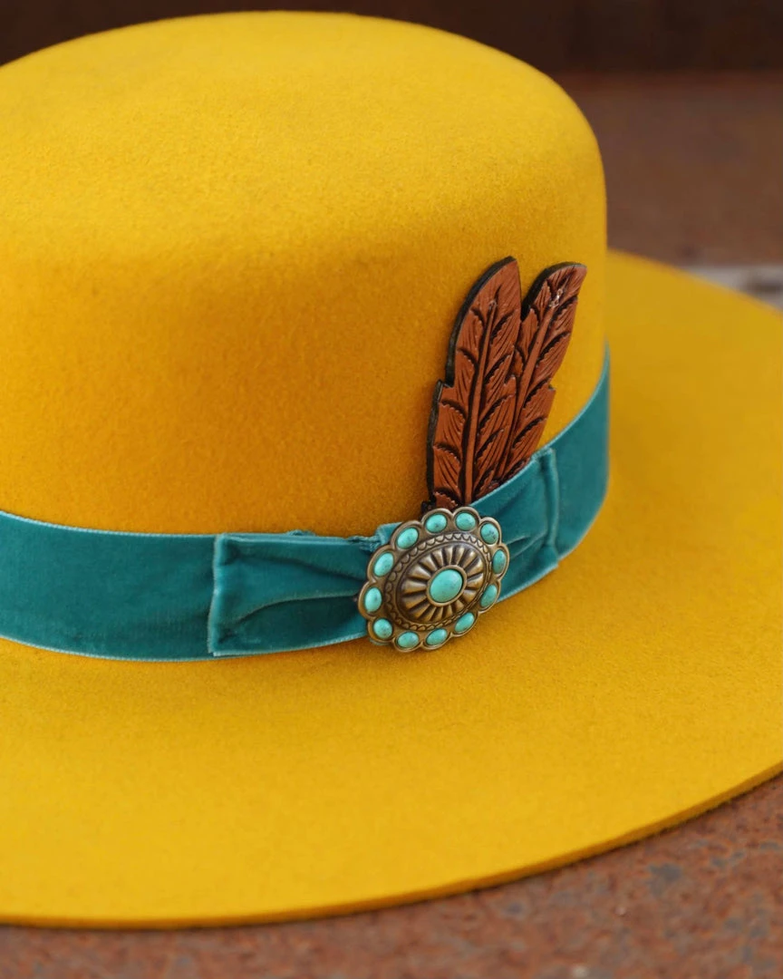 - Velvet outside band with antique concho