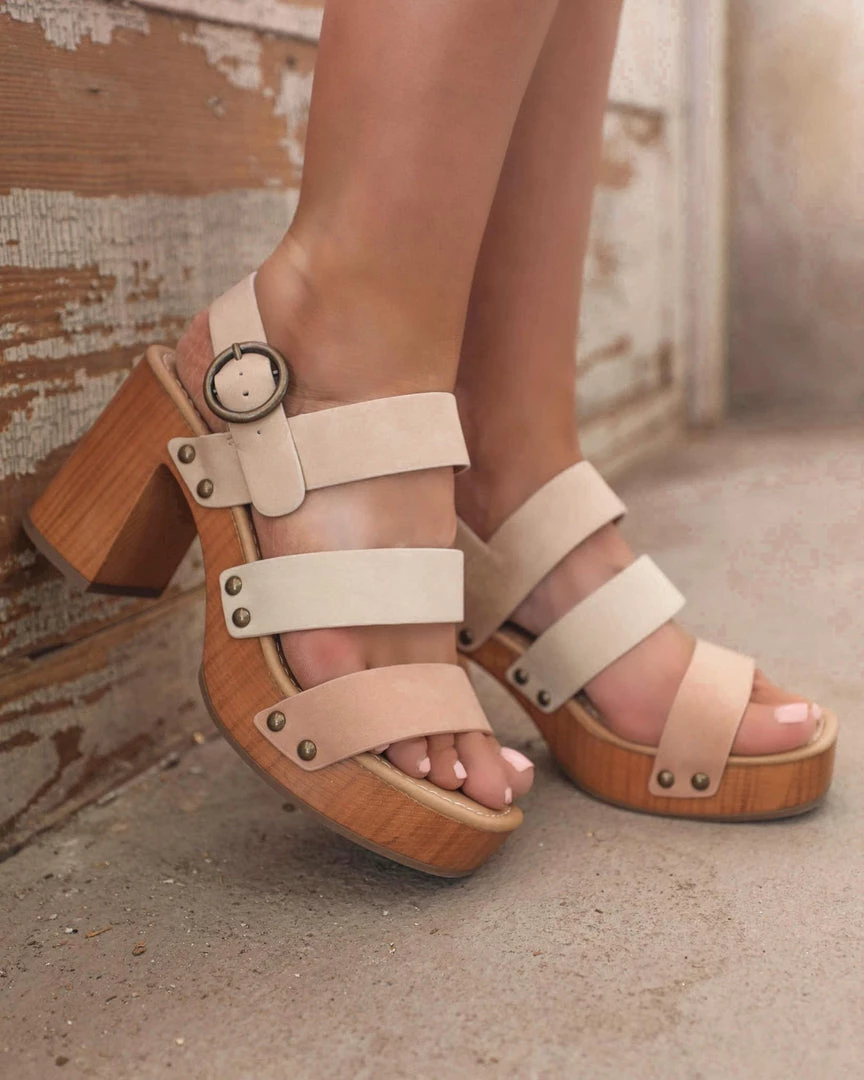 Be the first to review “City Classified Shoes Neutral 3 Strap Wood Platform Heels Boho Babe” Cancel reply
