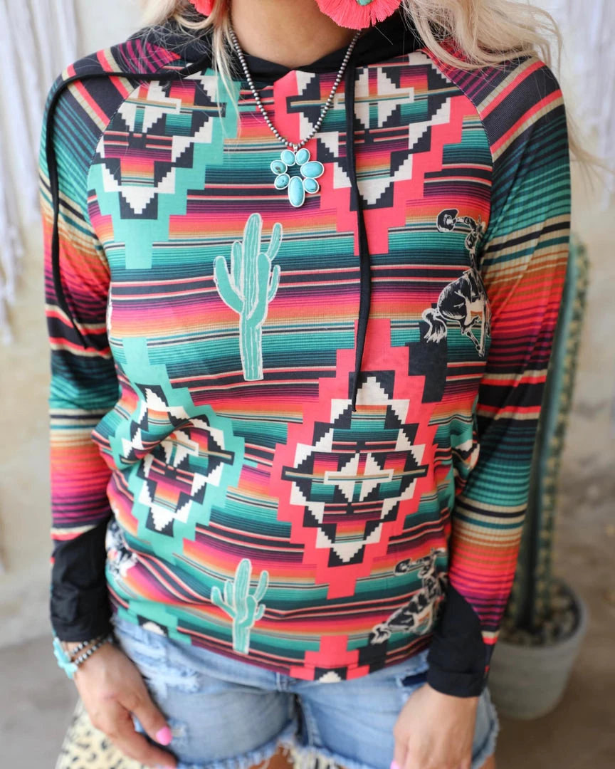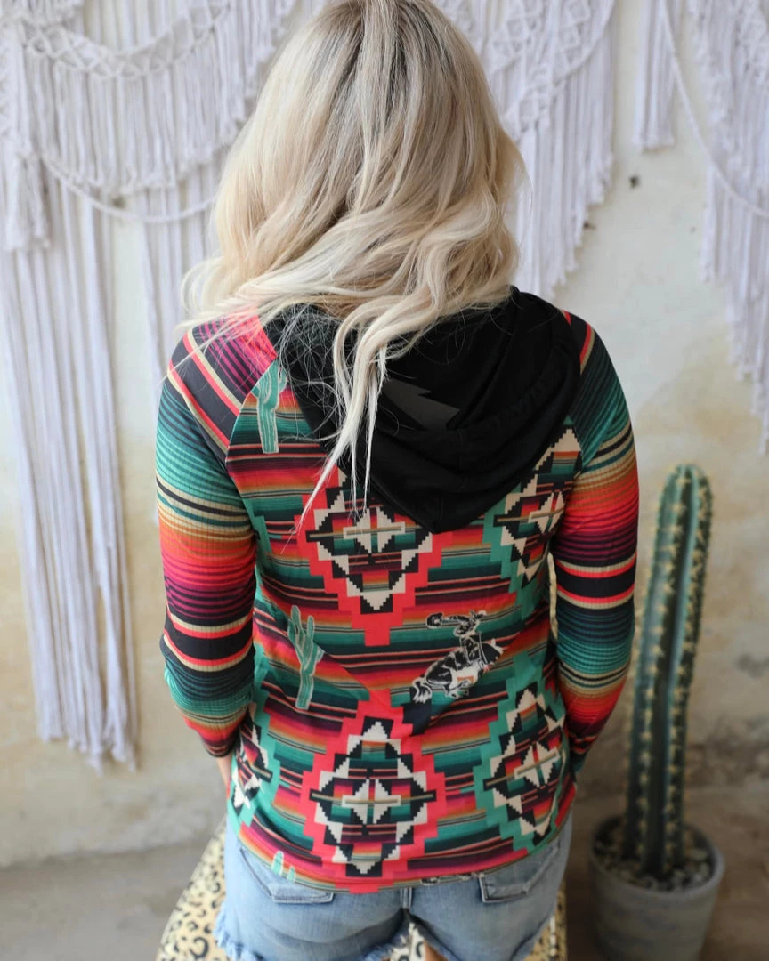 The new Crazy Train Bad N Boujee Hoodie is perfect for those cooler days. You will love the bright colors and combination of bright colors and western prints.