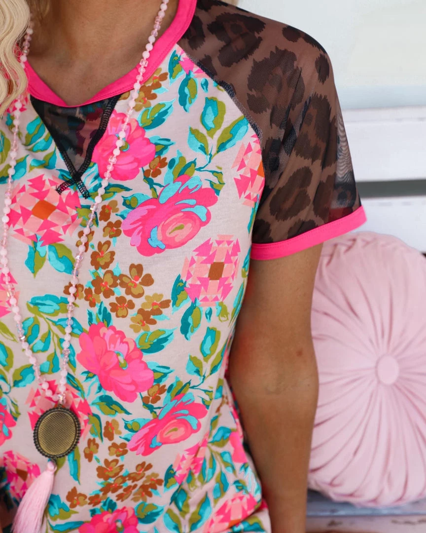 SKU: crazy-train-7277972717745 Categories: Apparel, Floral, New, TOPS, Tops, Trends Tags: Apparel, Aztec, Floral, New, Pink, Sheer, Shirt, Short sleeve