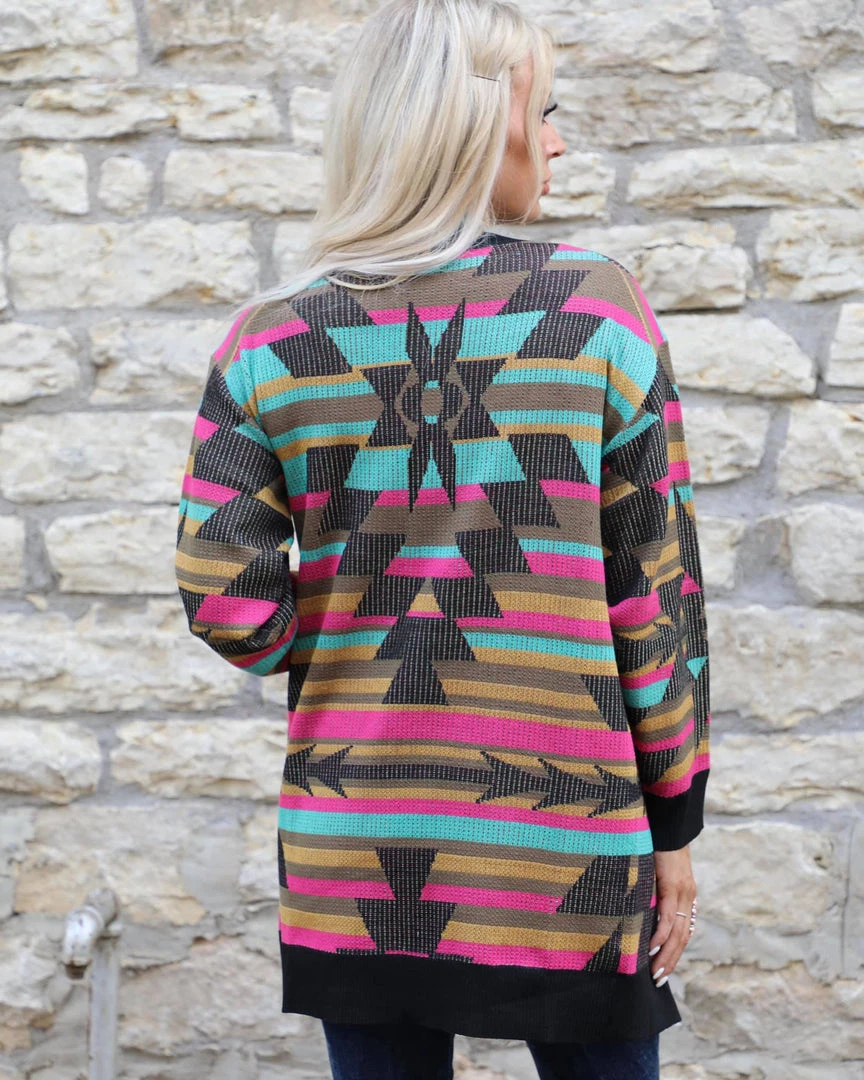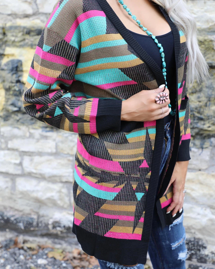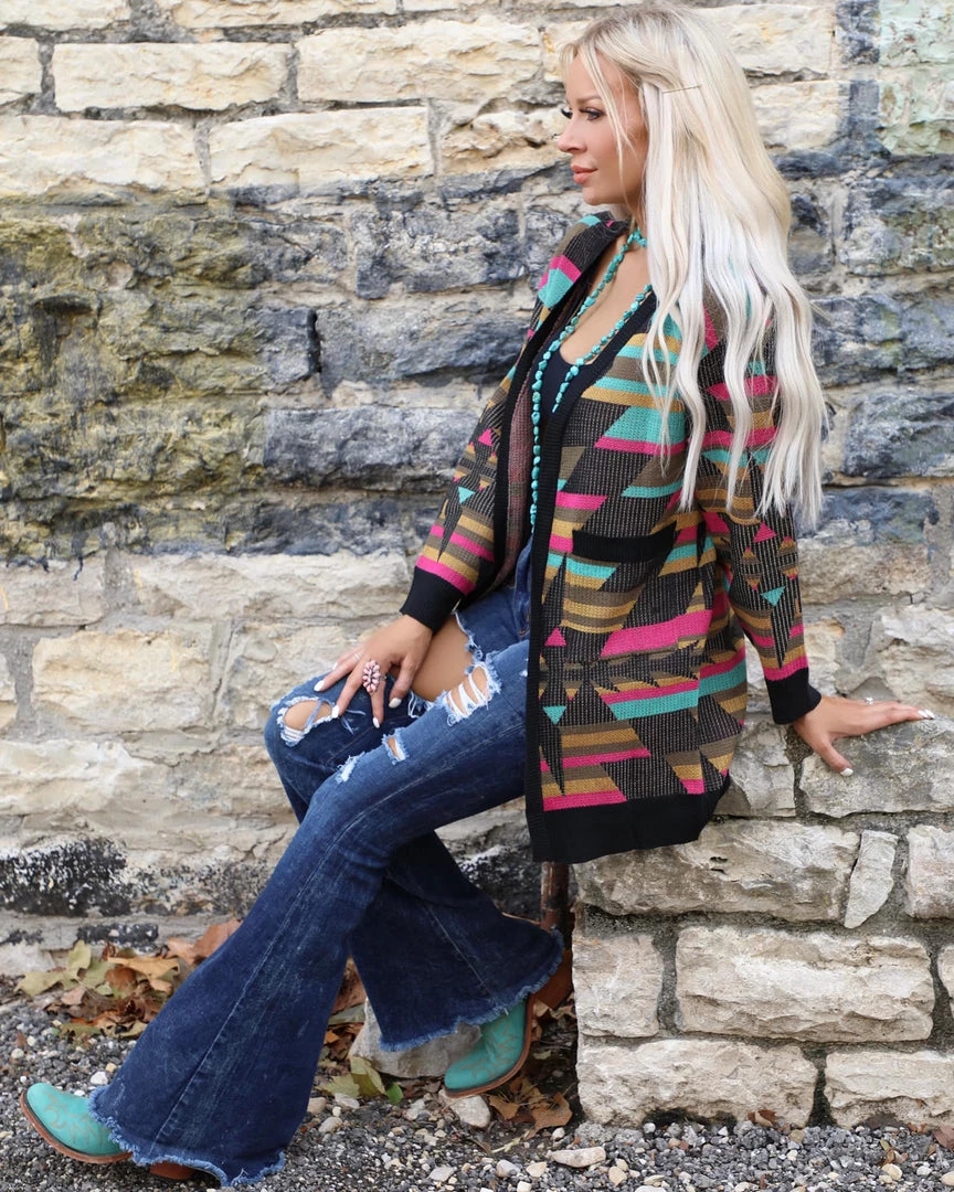 “You will love the SUNSET BLVD CARDIGAN from Crazy Train Clothing! The perfect layering piece for fall and winter – heck all year! Super comfy and colorful ribbed outer layer will be one that you LOVE to wear! Plus size approved! You will Feel Cute Everywhere in this one! :)”