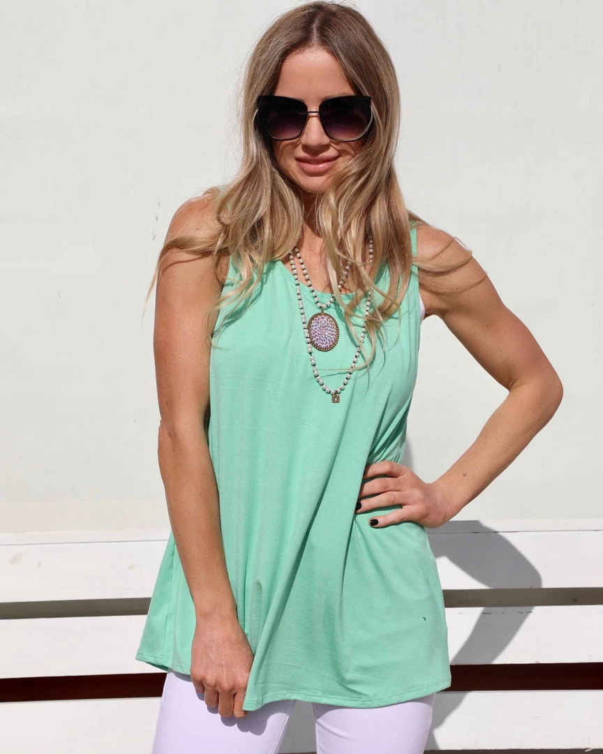 – Solid laser cut tank top – Round neck – Laser cut detail on back – Solid jersey