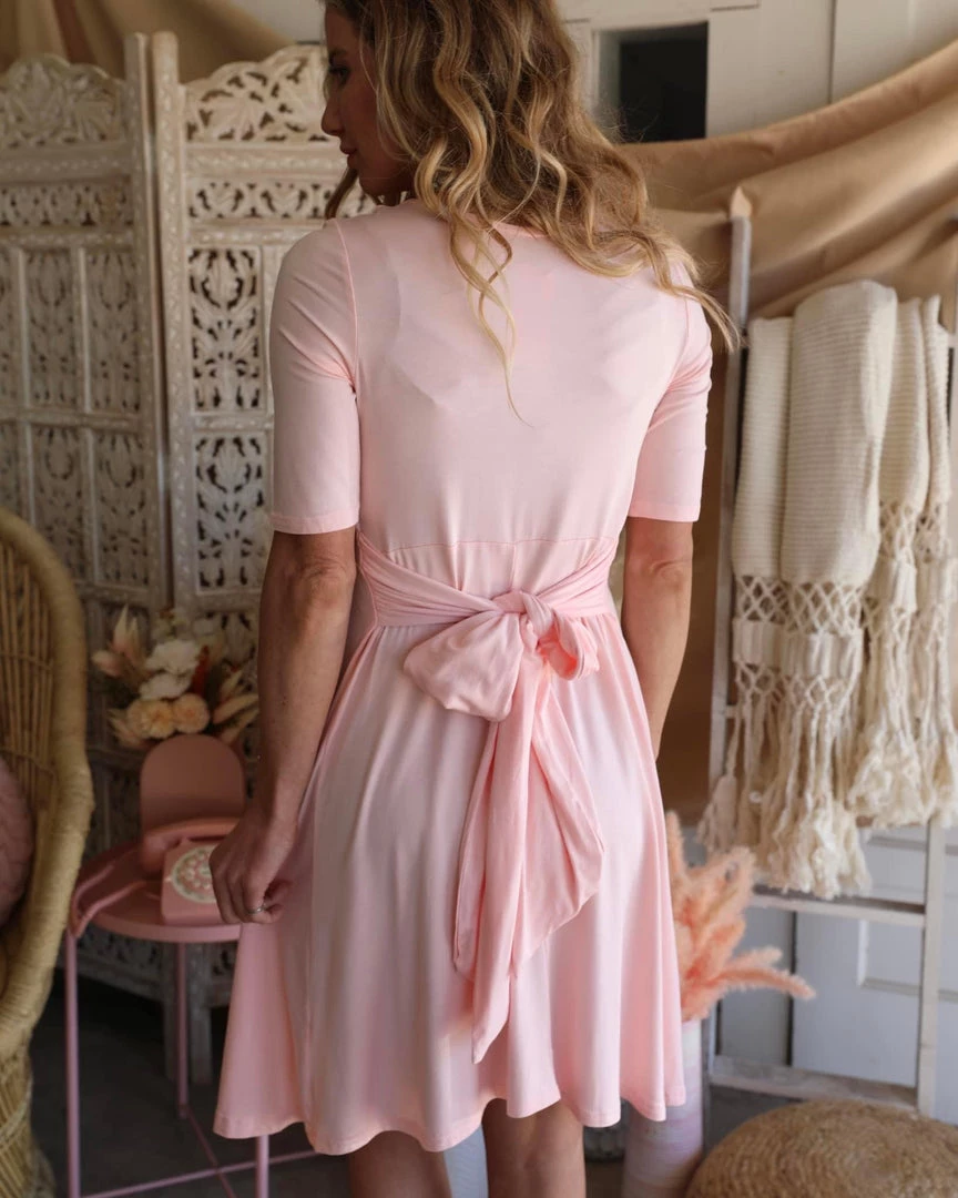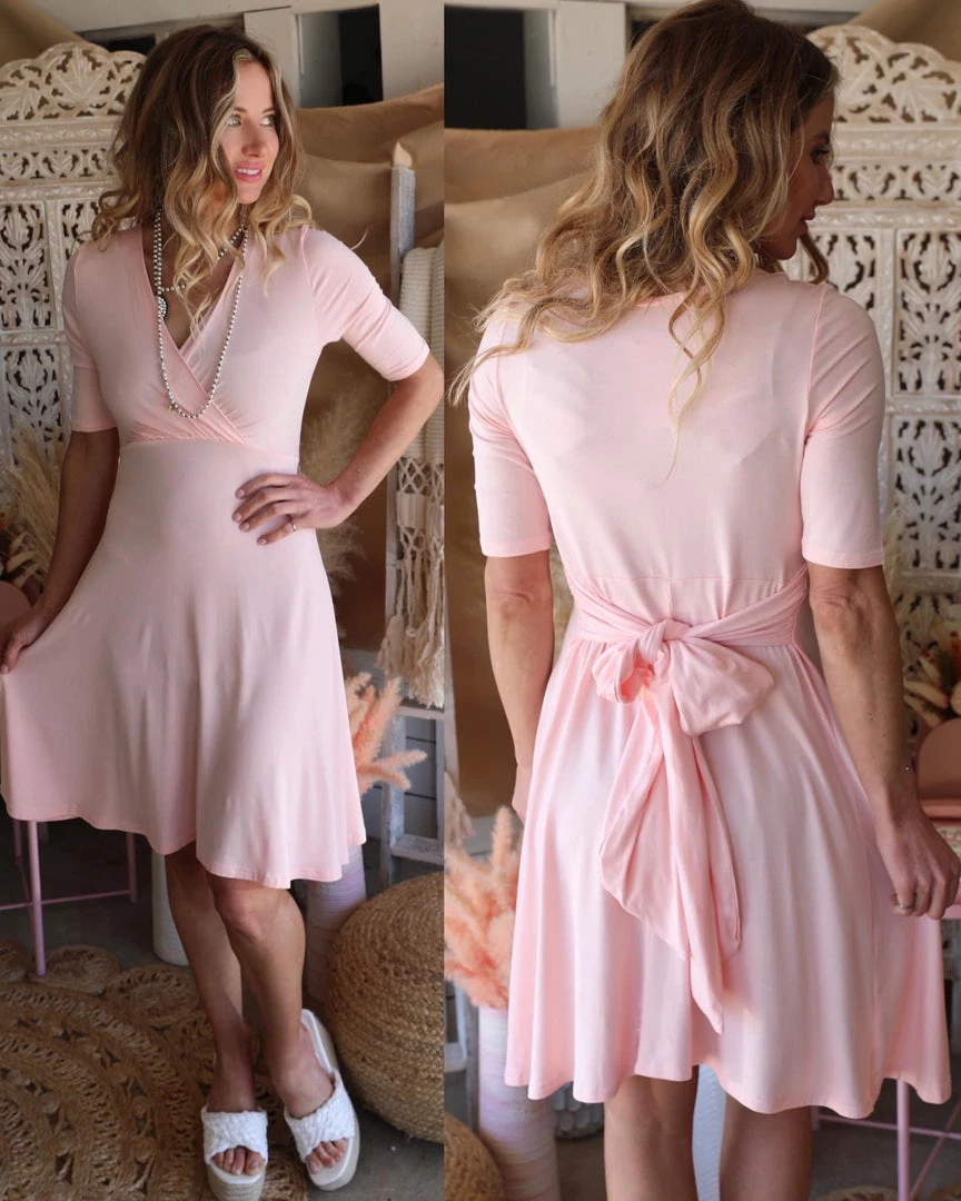Be the first to review “Ellie Flora Blush V-Neck + Tie Back Dress Apparel” Cancel reply