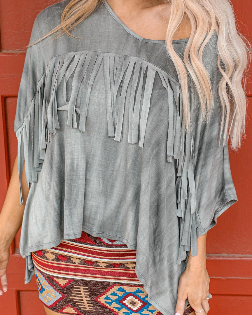 SKU: fantastic-fawn-7223146119345 Categories: Apparel, TOPS, Tops, Trends, Western Vibes Tags: Extra large, Fringe, Grey, May22, Oversized, Tie dye, Top, Western