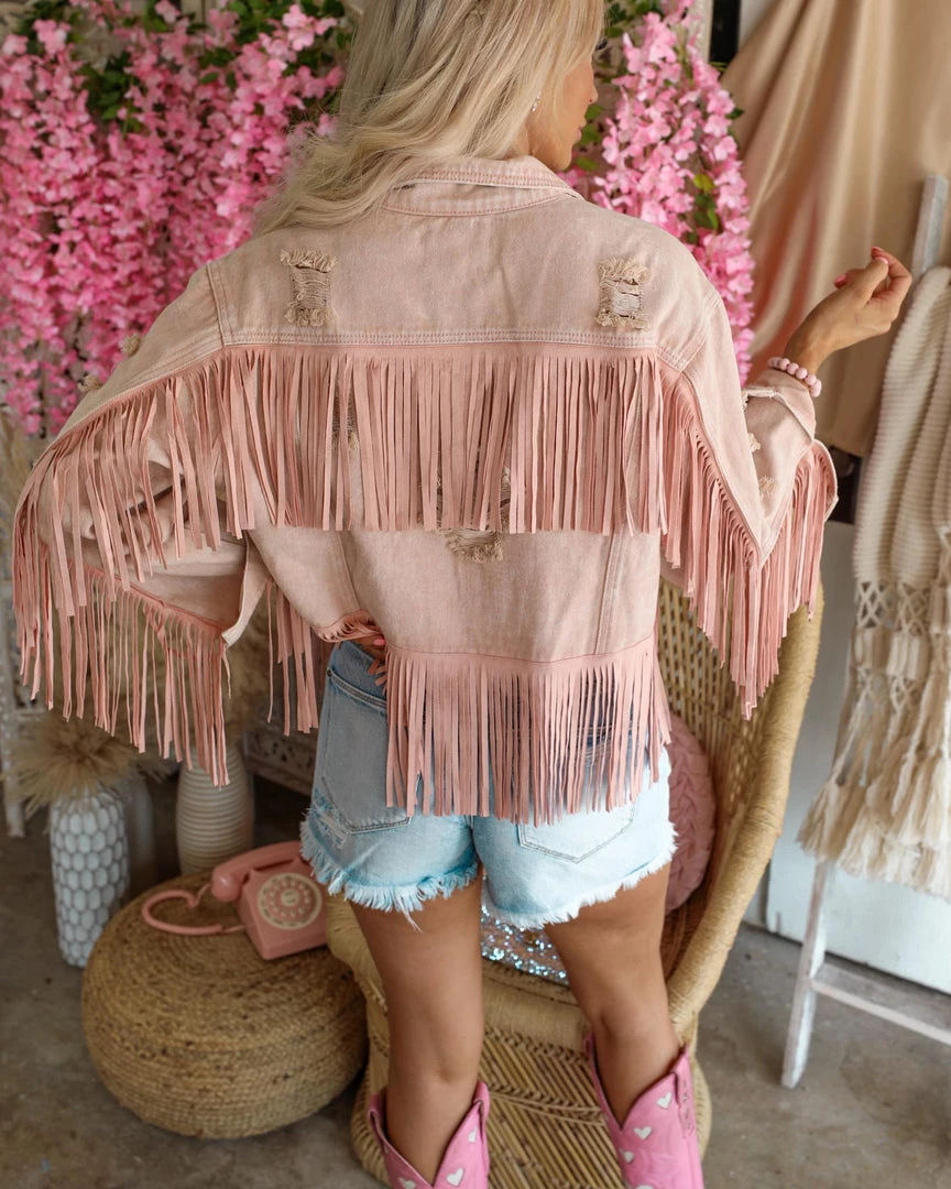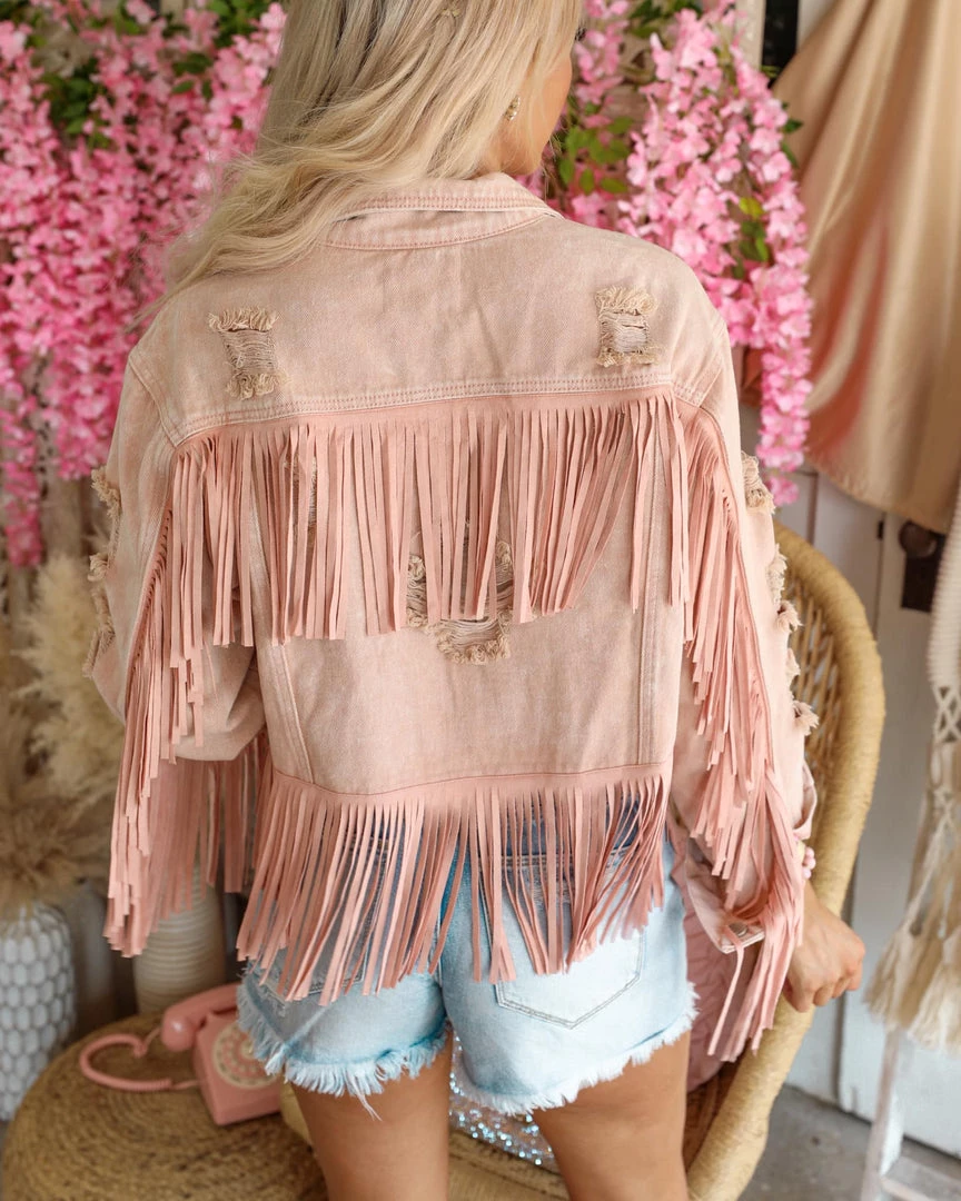Be the first to review “Fantastic Fawn Laurel Blush Distressed Denim Fringe Jacket Apparel” Cancel reply