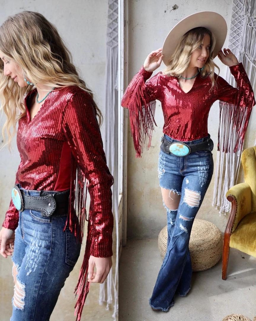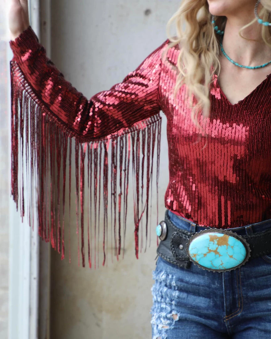 The Burgundy Sequin Bodysuit