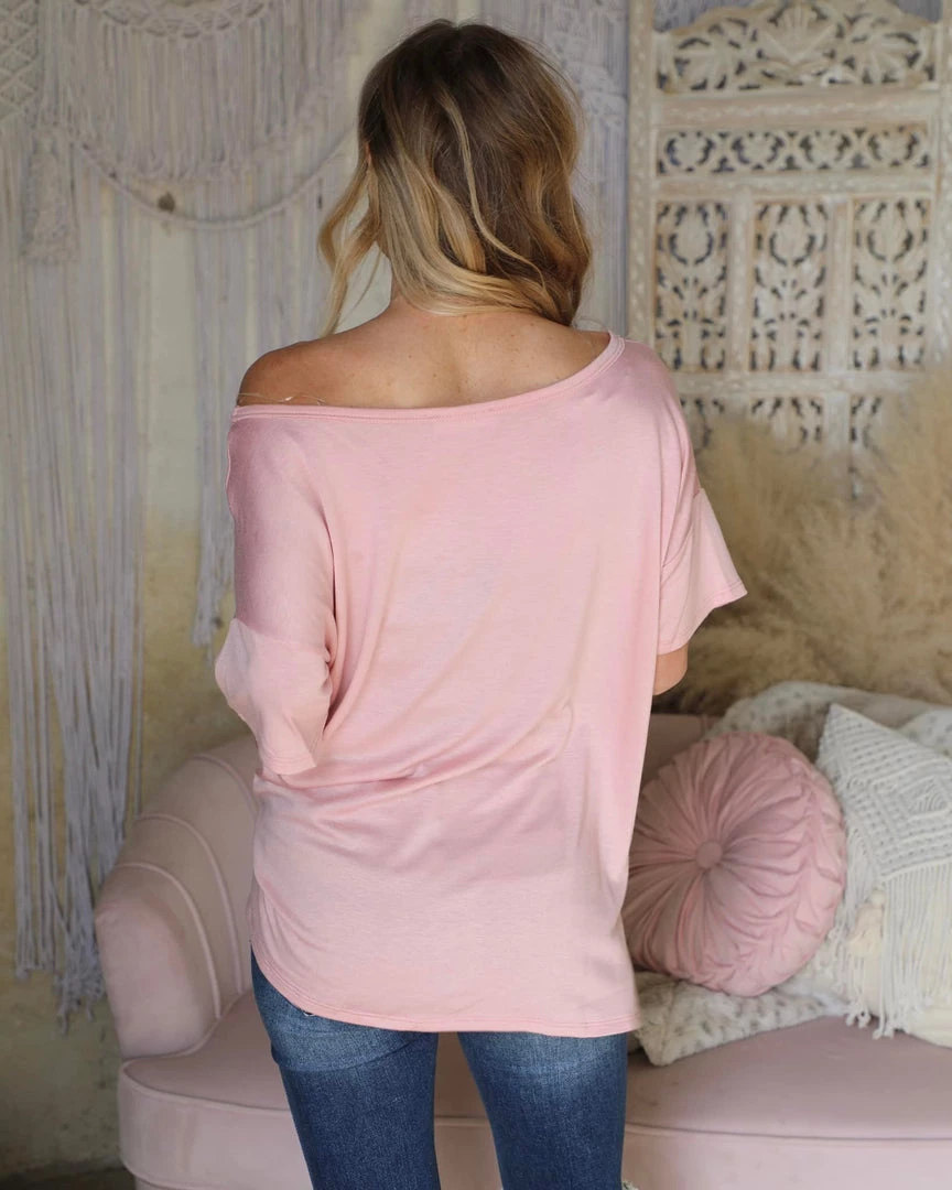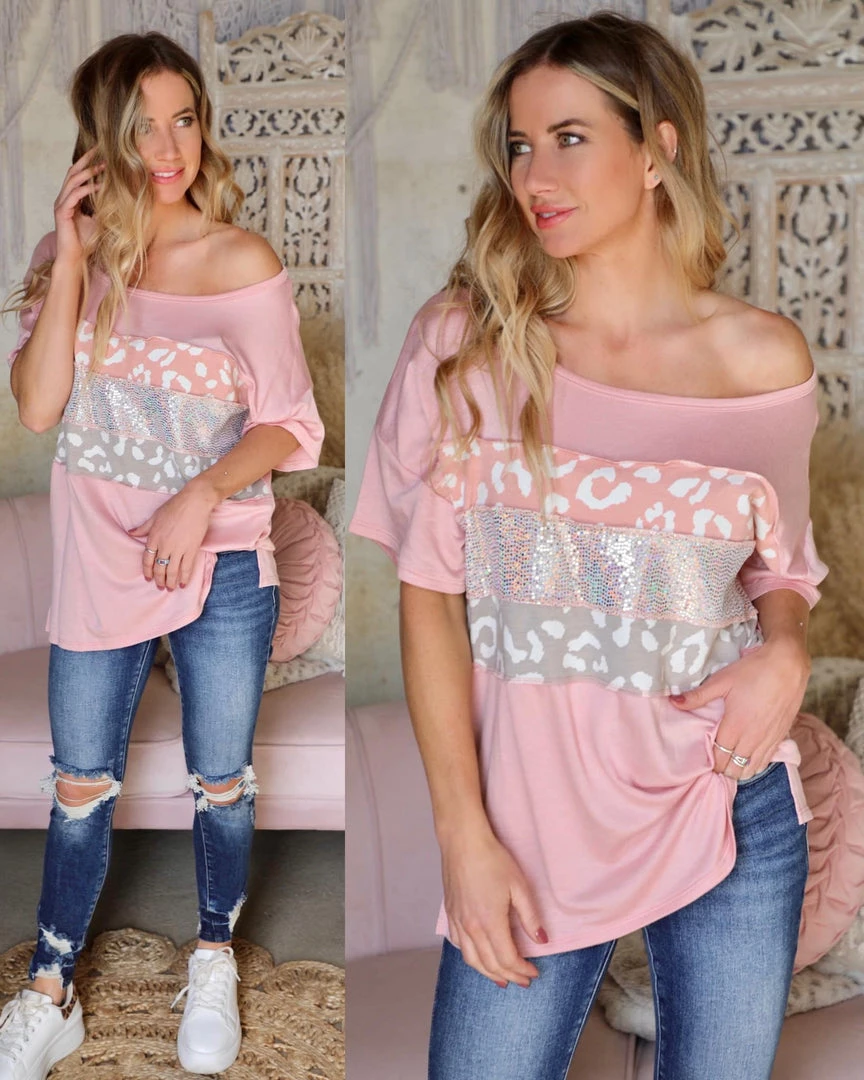 Wide boat neck and an oversized fit. Size down if you prefer a smaller fit. Haley is size 1 and 5’5” wearing the small