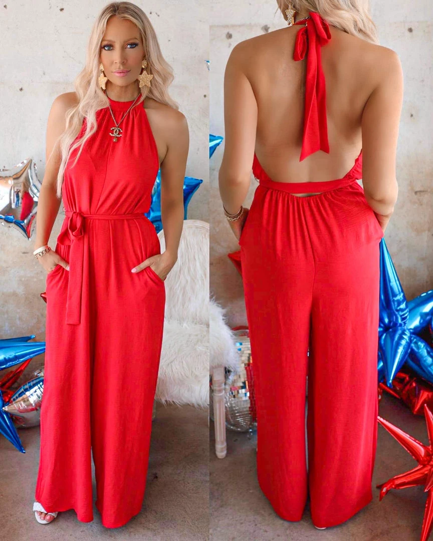 Be the first to review “Flying Tomato Apparel Sharlie Red Halter Jumpsuit” Cancel reply