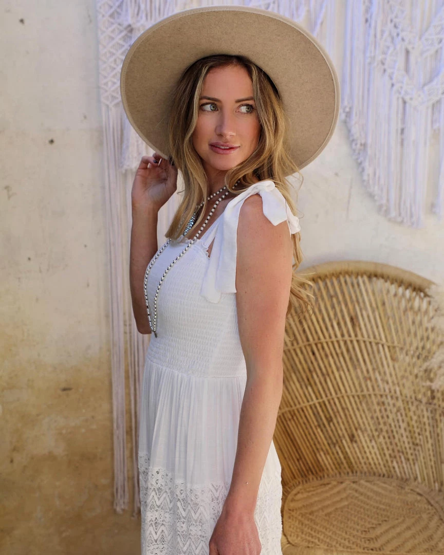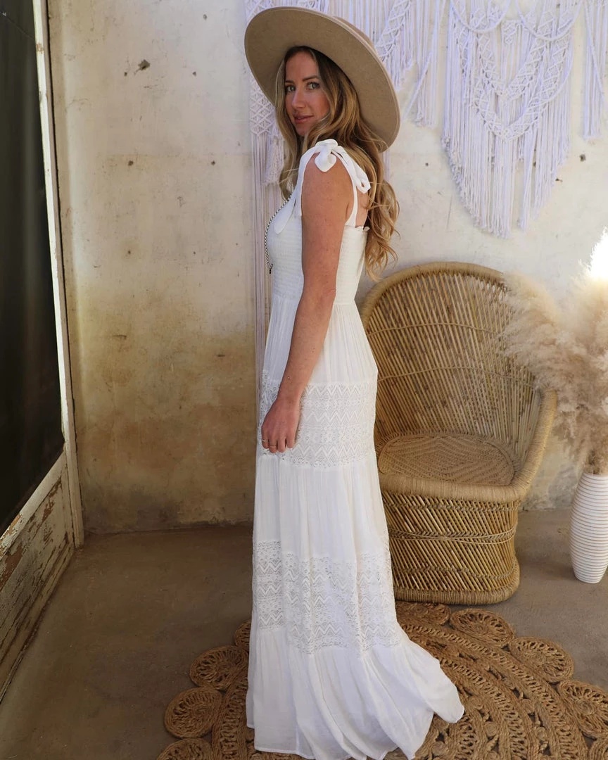 Adjustable tie shoulders with gorgeous mixed lace detail and chest stretchy ruching for the perfect fit