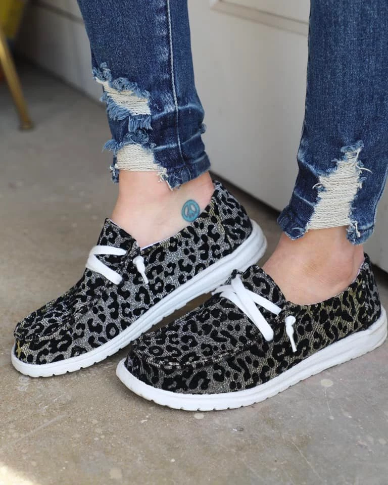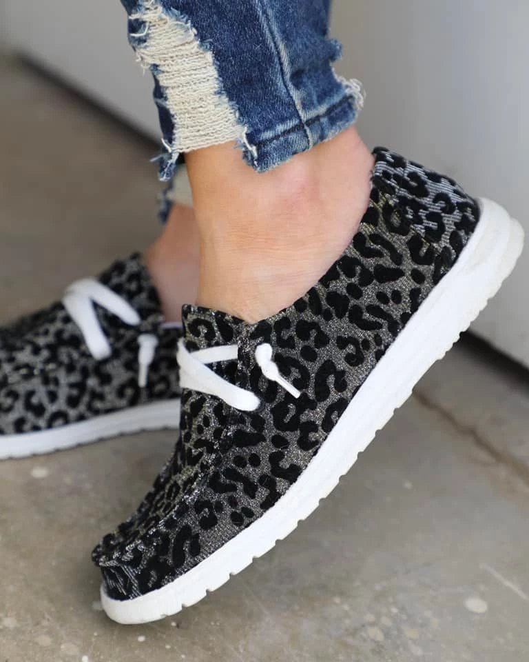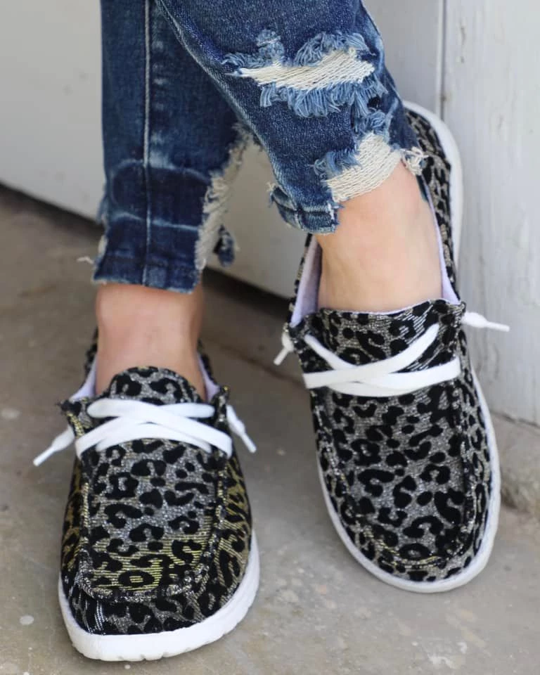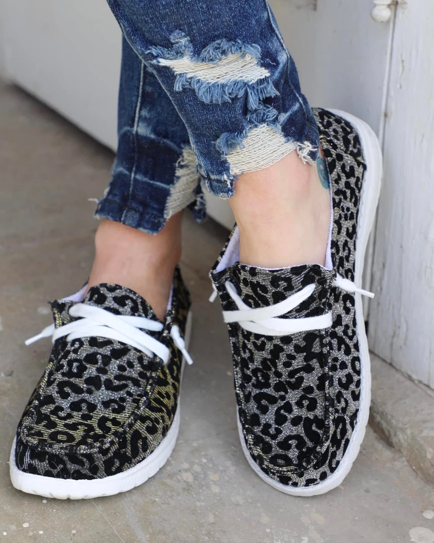 Gold and silver. In different lights – these shoes glow in different metallic leopard colors – hence the name “To The Moon”