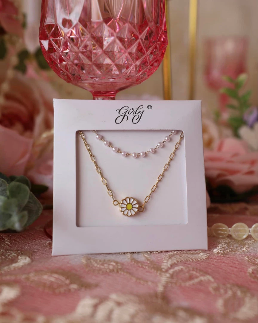 Be the first to review “Girly Daisy And Pearl Double Chain Necklace Spring Brunch Collection” Cancel reply