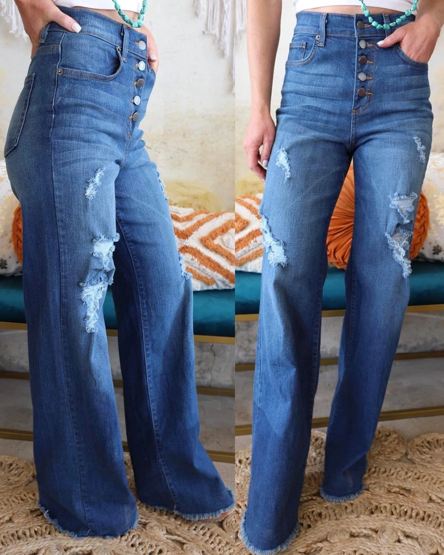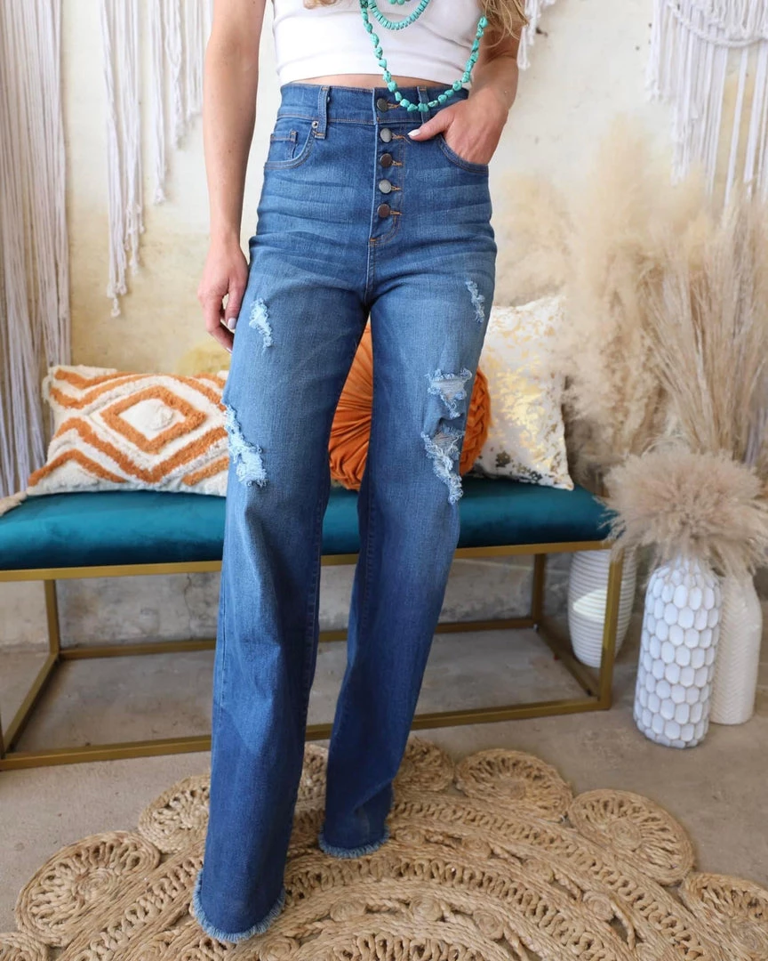 SKU: gjg-denim-7176085733553 Categories: Apparel, BOTTOMS, Flares + Bell Bottoms, Jeans Tags: Apparel, Bottoms, Denim, Flares, Jeans, March22, Medium wash, Wide leg
