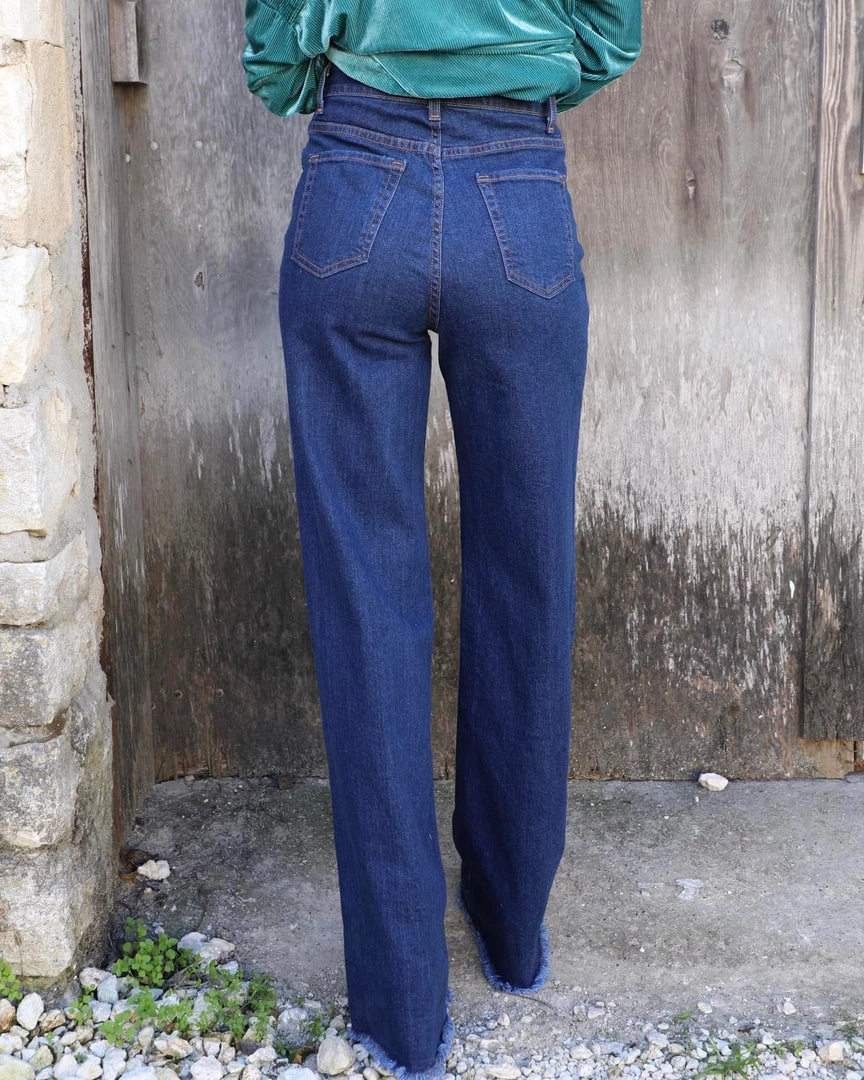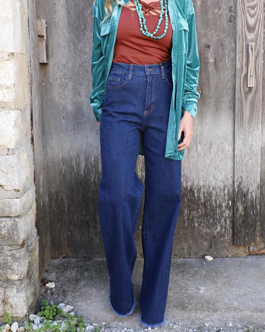 SKU: gjg-denim-7049450455217 Categories: Apparel, BOTTOMS, Flares + Bell Bottoms, Jeans Tags: Apparel, Dark, Dark blue, Flares, Frayed, Nov21, Wide, Wide leg