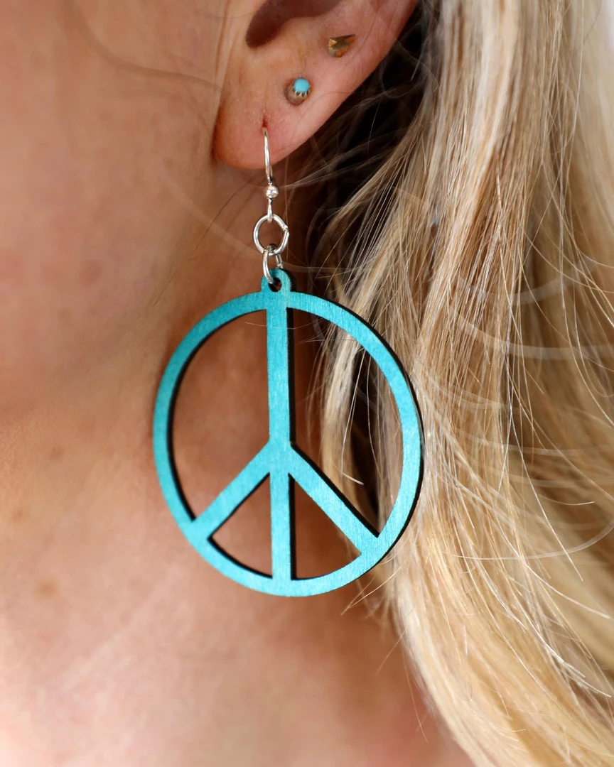 - Aqua Wood Peace Earrings