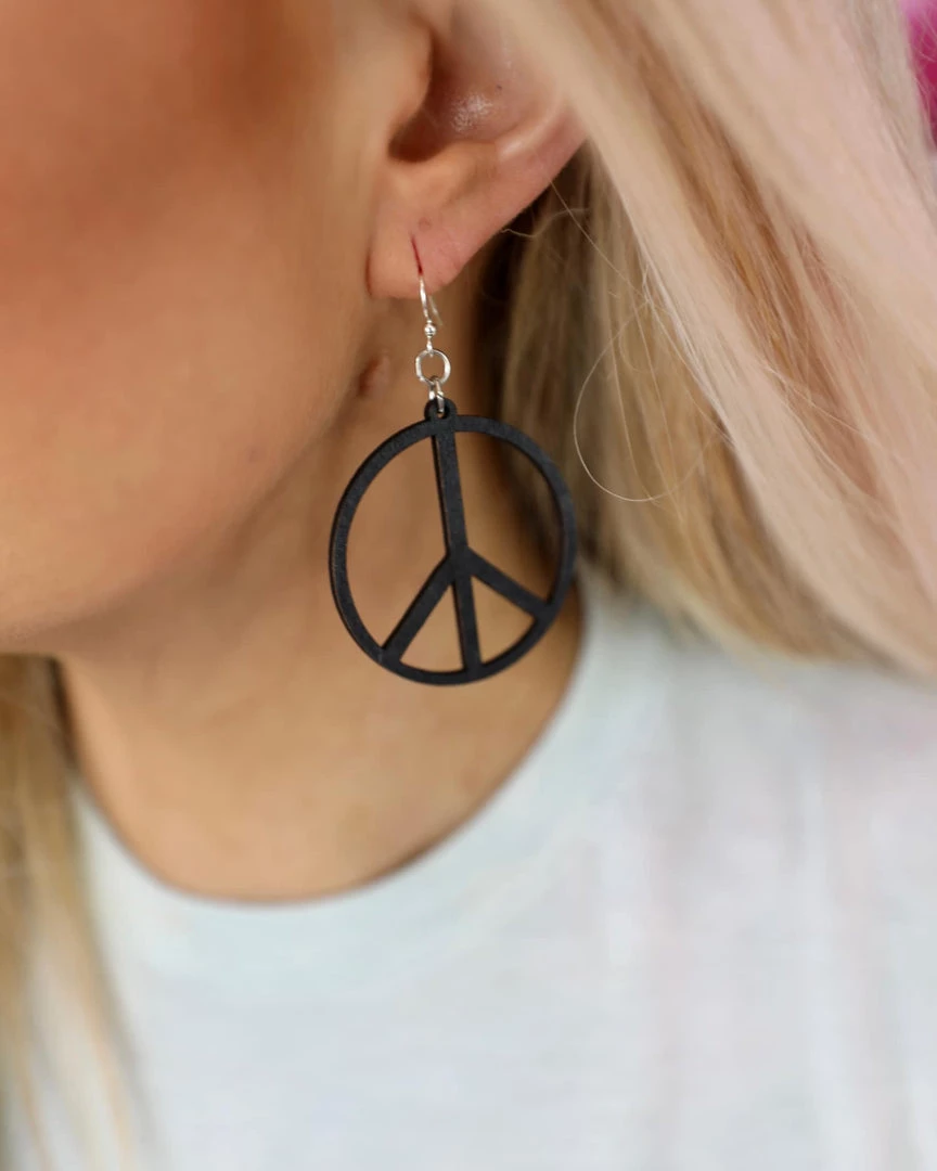 - Black Wood Peace Earrings
