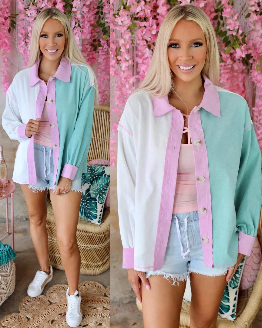 SKU: hailey-co-7210113826993 Categories: Apparel, Spring Brunch Collection, TOPS, Tops, Trends Tags: Button up, Button up tops, Lavender, Mint, Shirt, Spring, Tops, White