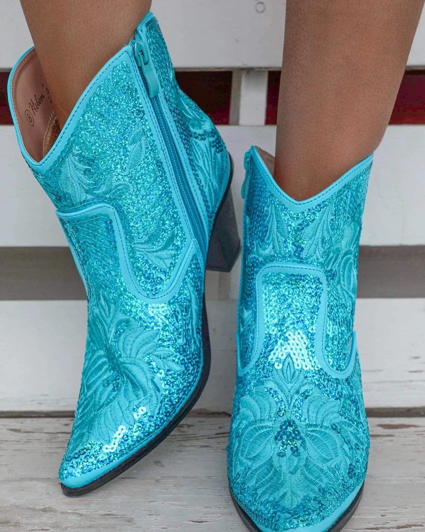 - Turquoise Sequin Booties