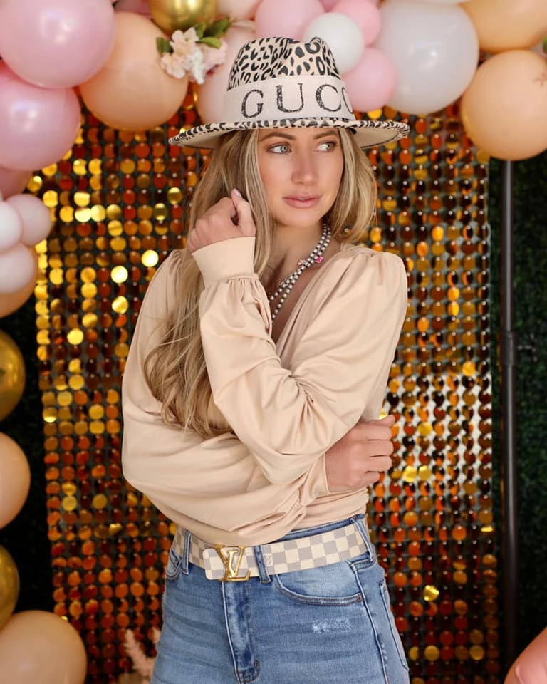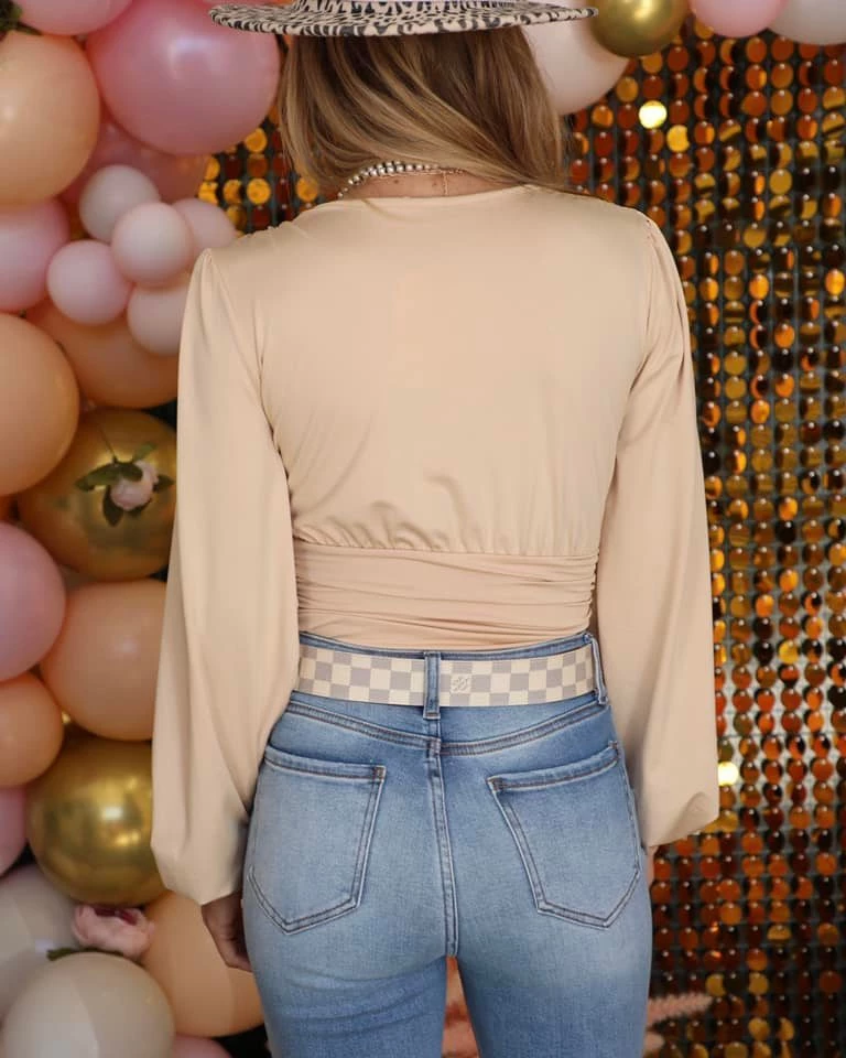 This sexy bodysuit is a classic V-neckline and long balloon sleeves with fitted cuffs