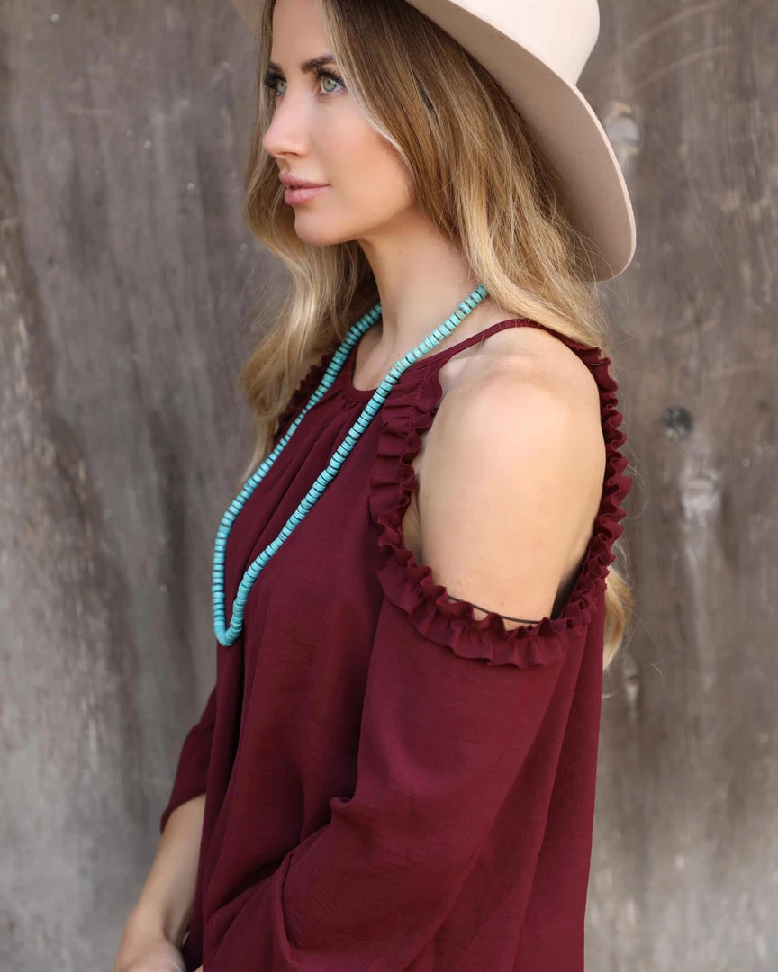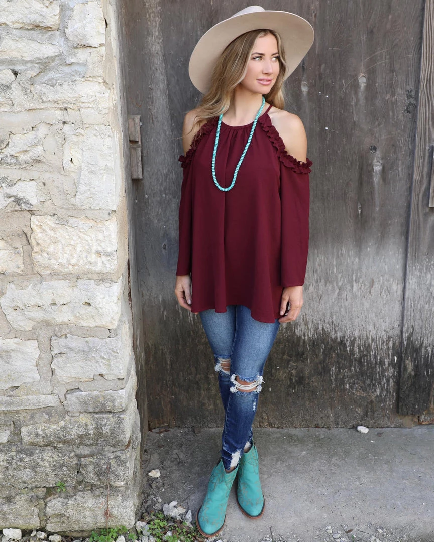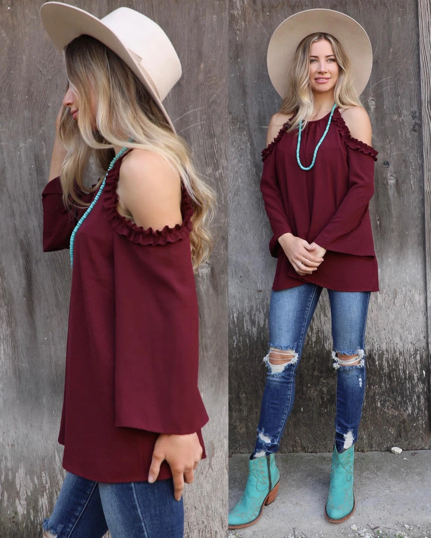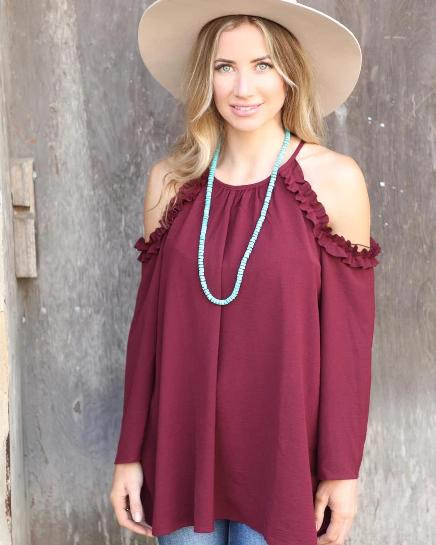 Cold shoulder ruffle detail with relaxed fit