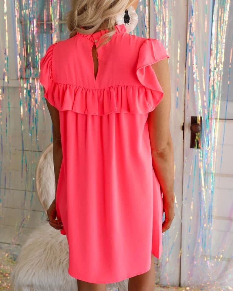 SKU: jodiful-7254174007473 Categories: All Dresses, Apparel, Casual + Basic, DRESSES, Neon Summer, New, Trends Tags: Apparel, Casual, Dress, Flowy, June22, Neon pink, New, Ruffle