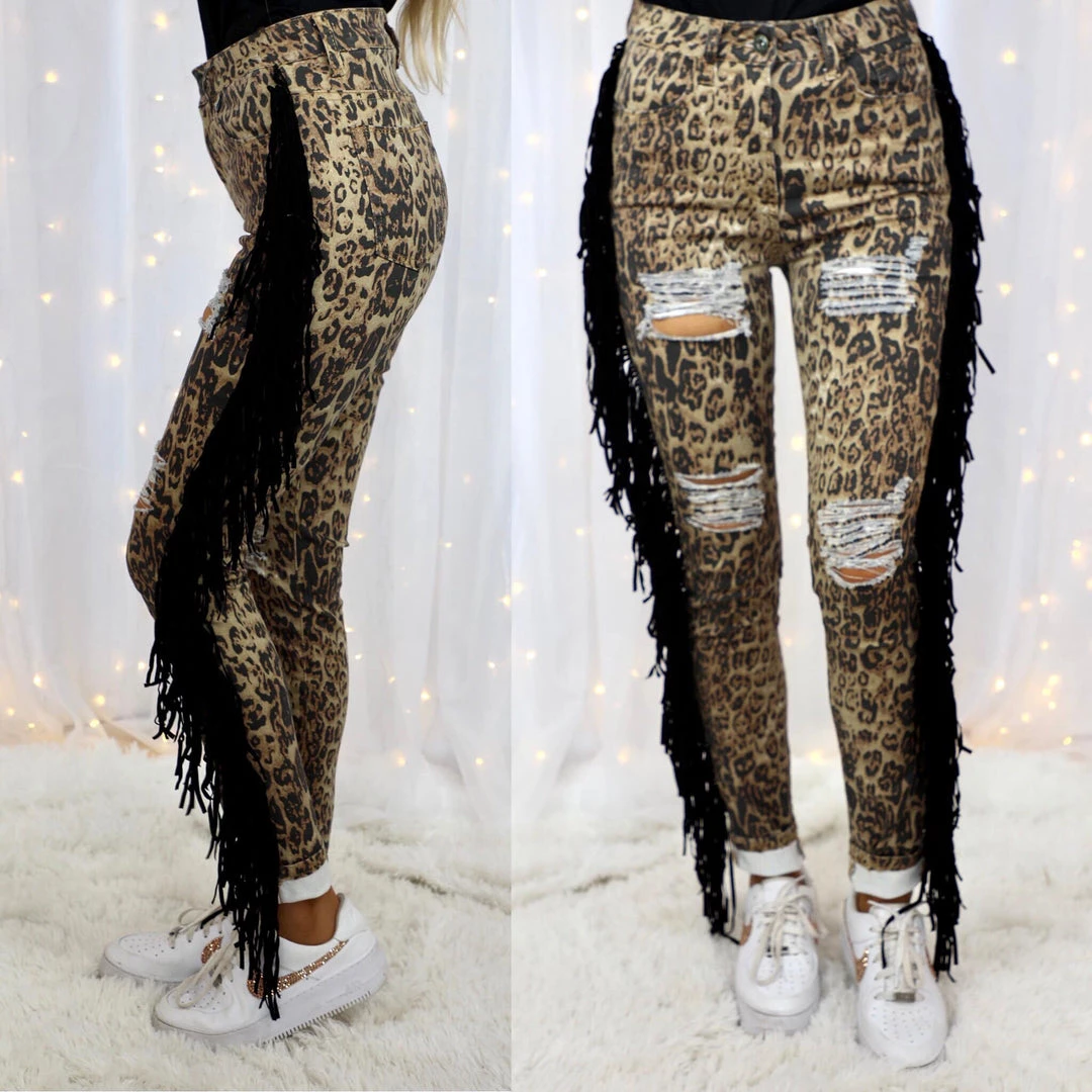 SKU: l-b-6607995502769 Categories: Apparel, BOTTOMS, Leopard Everything, Pants, Trends Tags: Apparel, Bottoms, Fringe, Leopard, March21, Markdown, Pants, Salerack