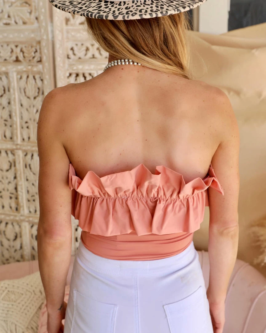 The Emmany Salmon Off The Shoulder Ruffle Bodysuit