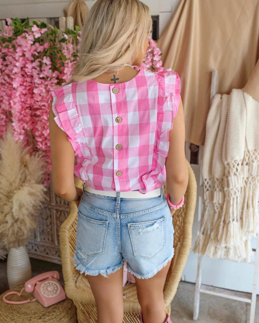 SKU: love-is-all-7232398131377 Categories: Apparel, Kelsey's Faves, Spring Brunch Collection, Tank Tops + Halters, TOPS, Tops, Trends Tags: Apparel, Checkered, Faves, Pink, Ruffle, Spring, Tank, Top