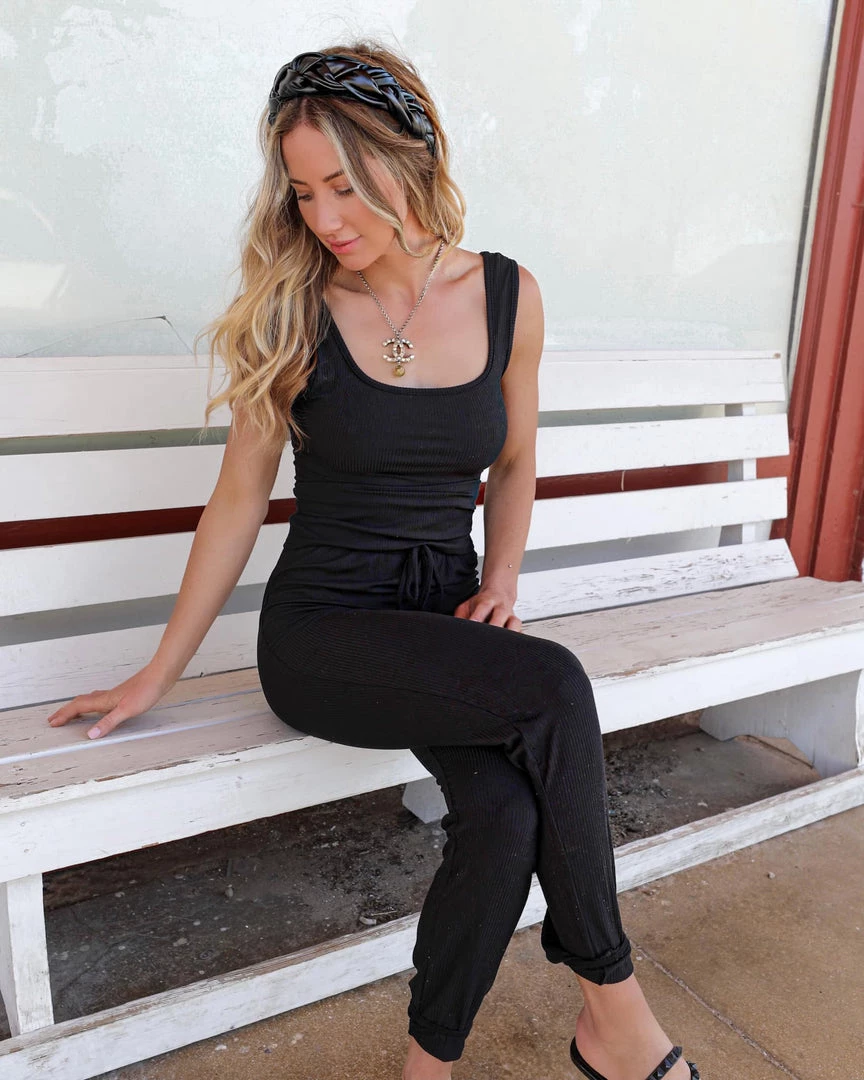 Be the first to review “Made With Love Black Ribbed Jogger Set Apparel” Cancel reply