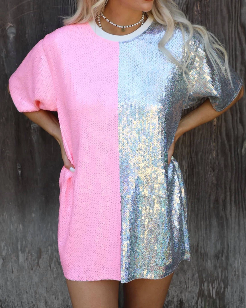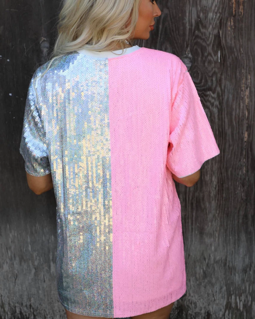 Pink + Silver Color Block Sequin Top