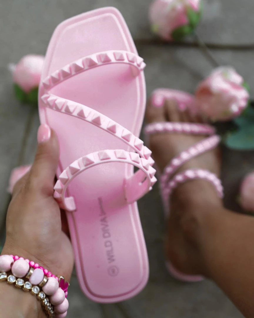 - Pink Pyramid Studded Sandals